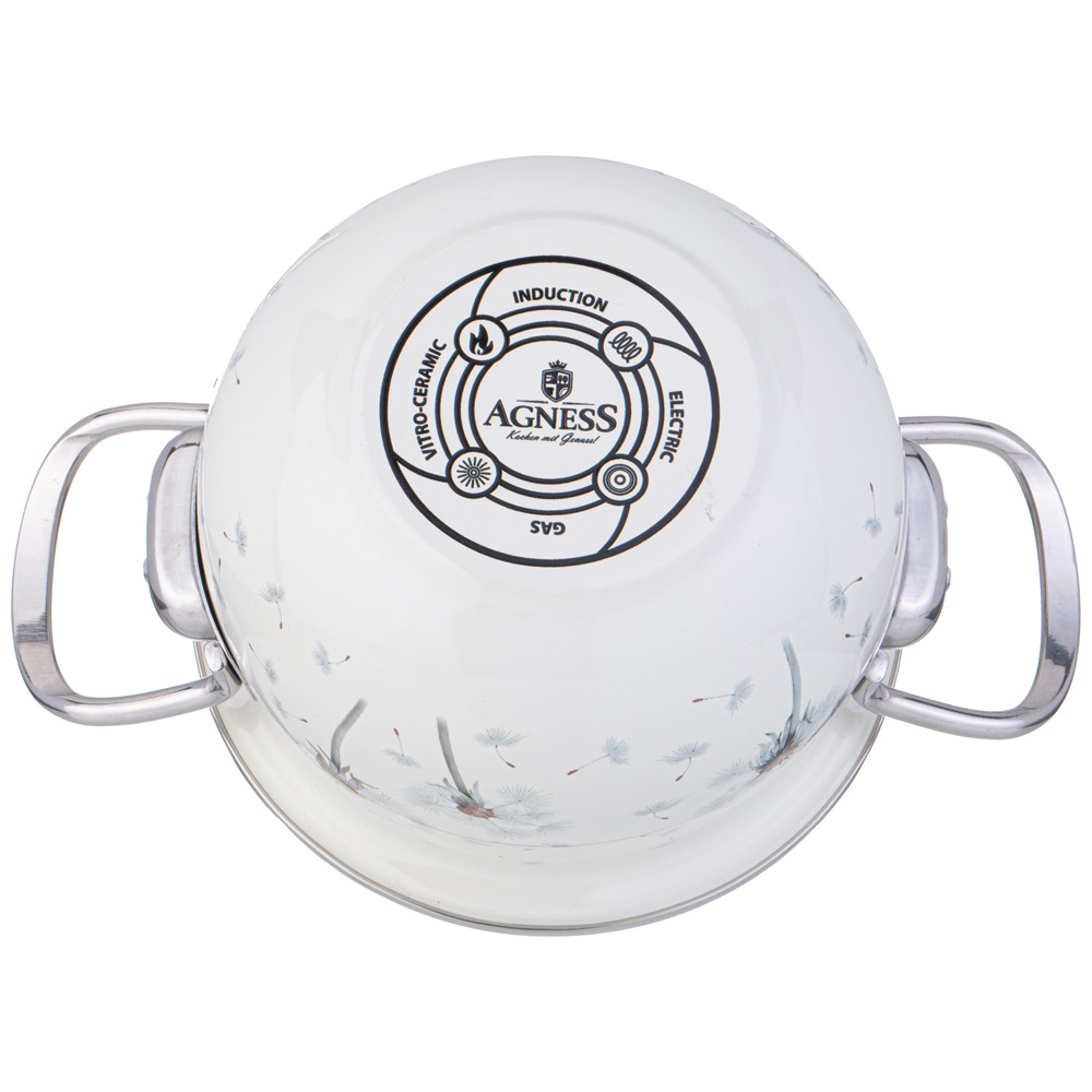 Кастрюли с крышкой данной серии ТМ "Agness" изготовлены из стали с эмалированным покрытием и подходят для газовой, электрической и индукционной плиты.
