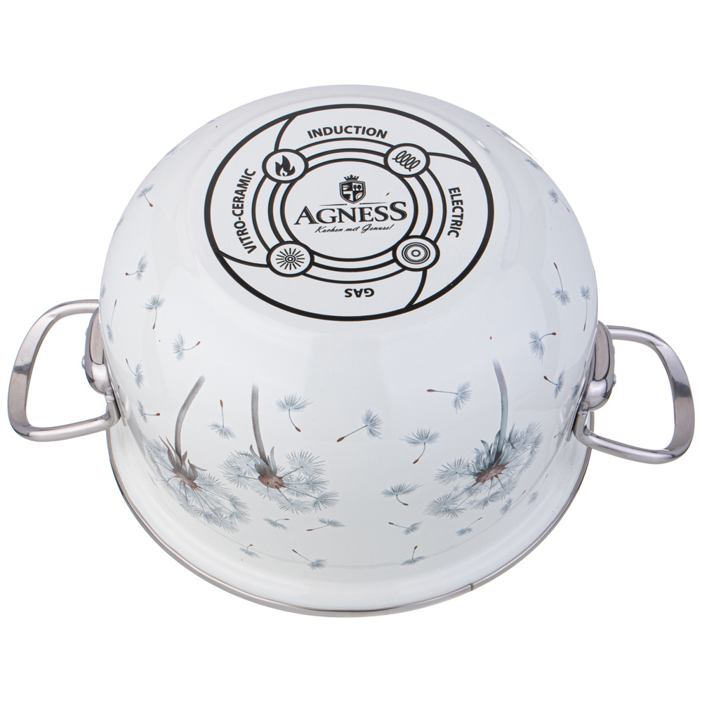 Кастрюли с крышкой данной серии ТМ "Agness" изготовлены из стали с эмалированным покрытием и подходят для газовой, электрической и индукционной плиты.