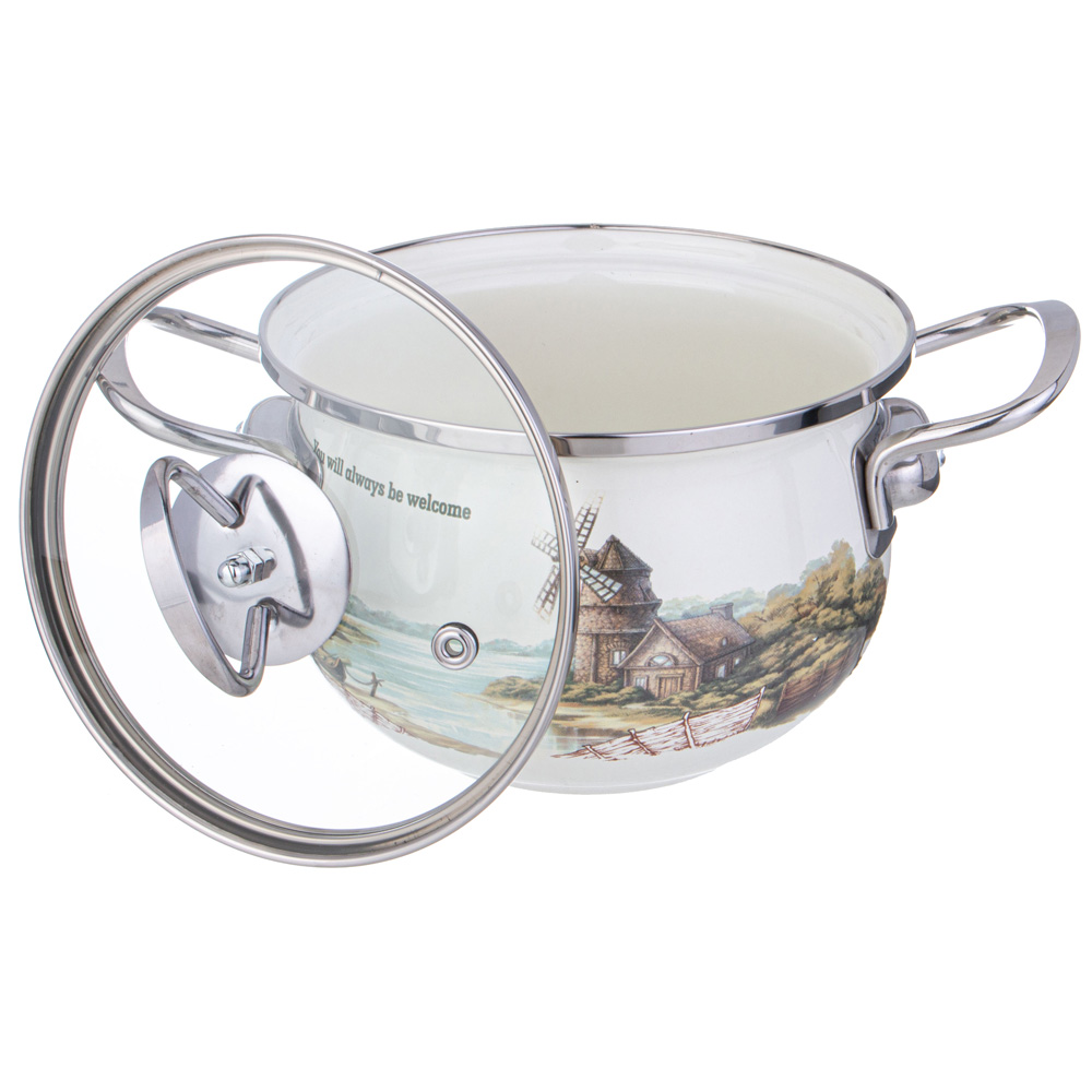 Кастрюля эмалированная со стеклянной крышкой "FAMILY HOUSE" , 1,5 л