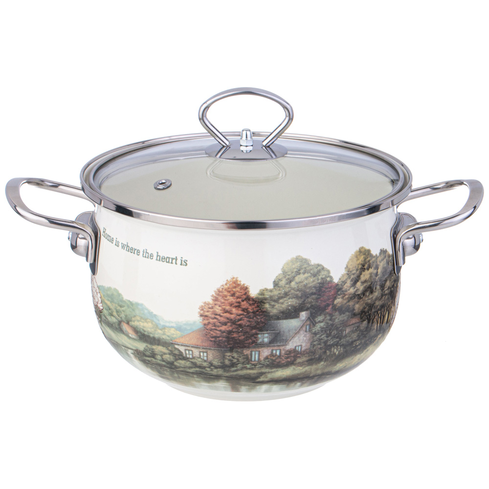 Кастрюля эмалированная со стеклянной крышкой "FAMILY HOUSE", 2,8 л