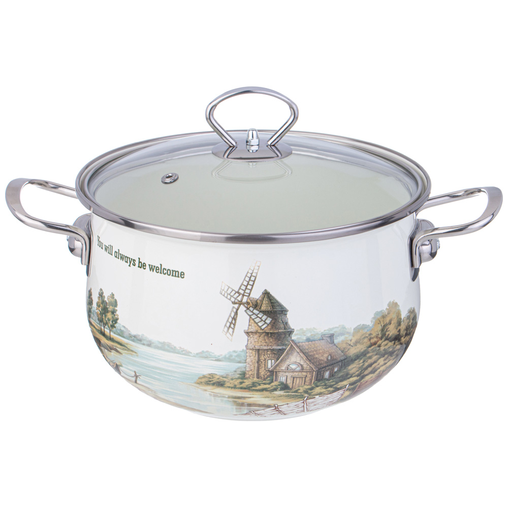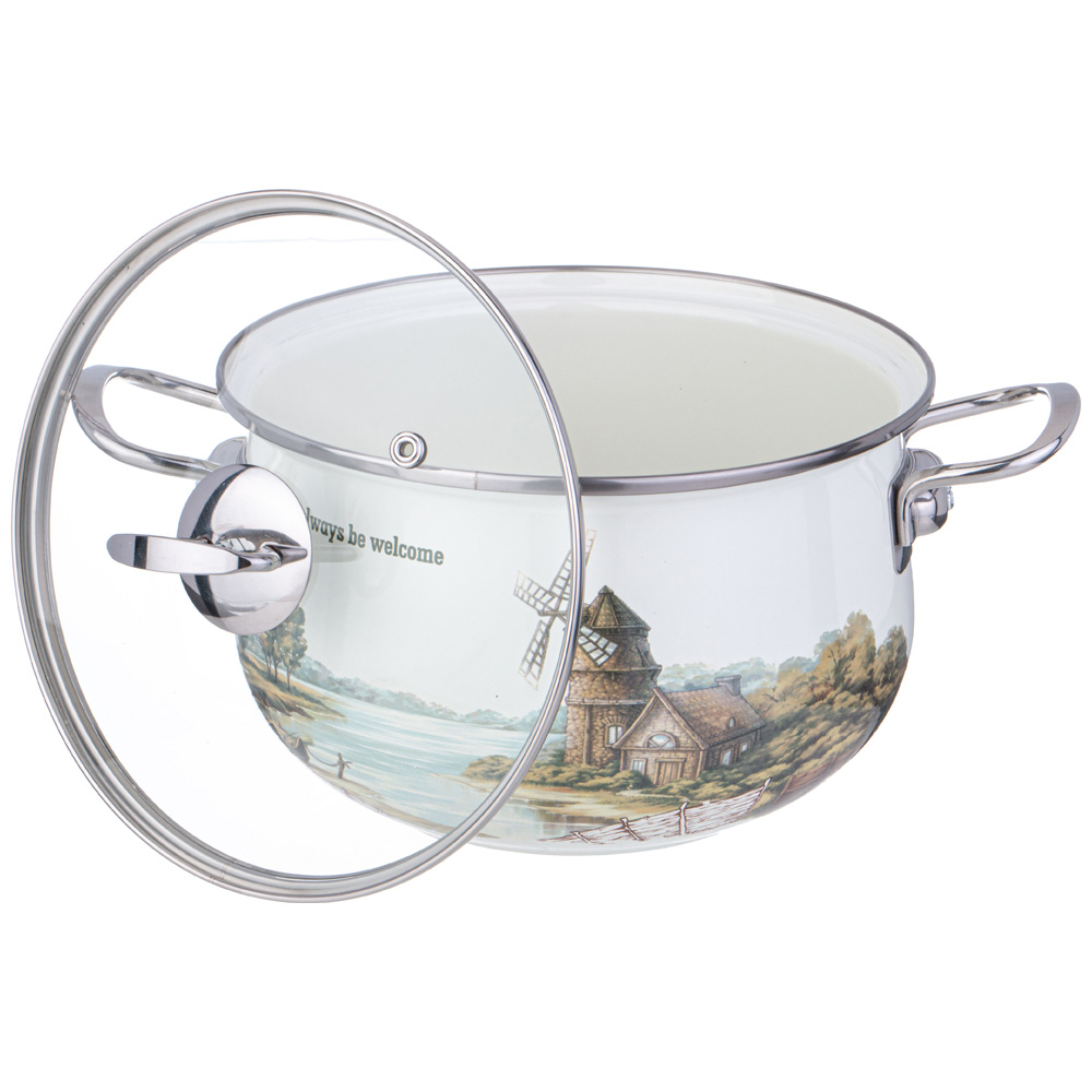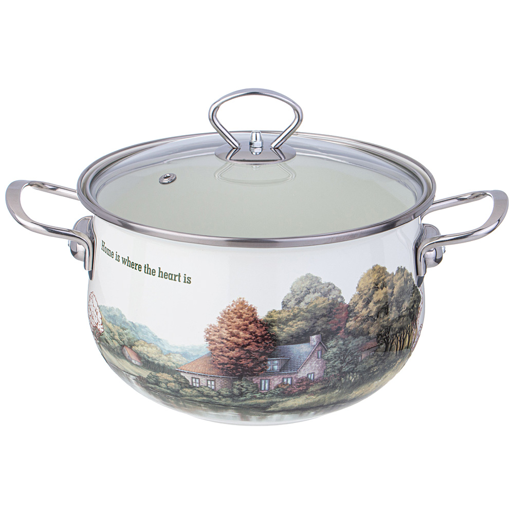 Кастрюля эмалированная со стеклянной крышкой "FAMILY HOUSE", 3,8 л