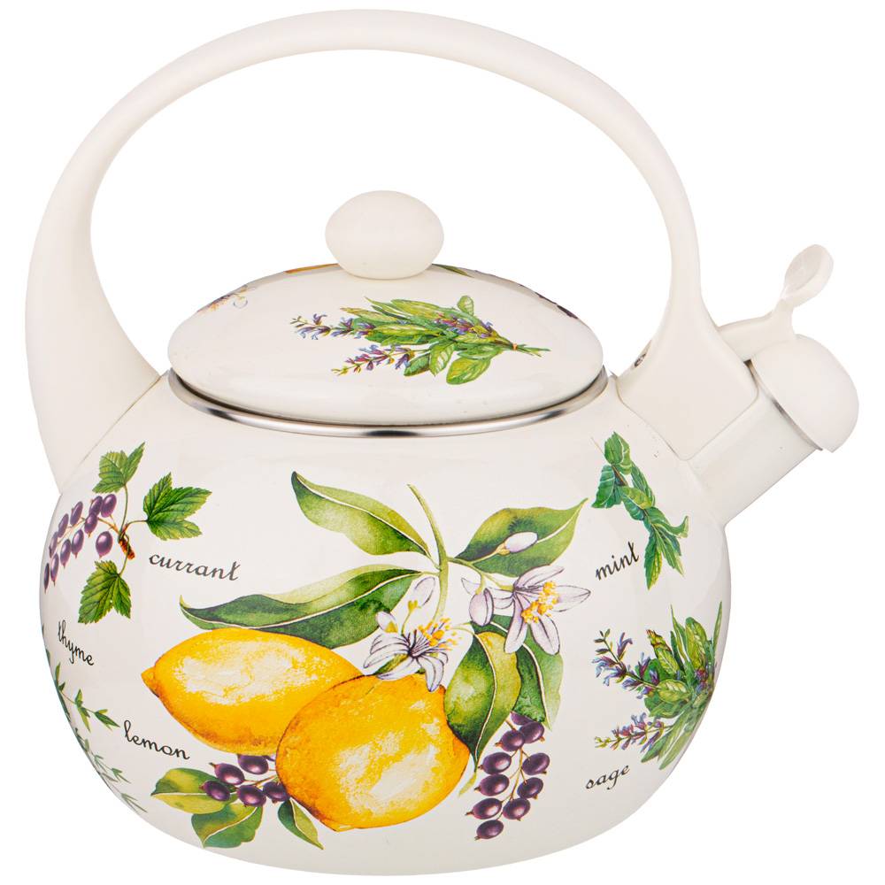Чайник эмалированный со свистком "СЕКРЕТНЫЕ ИНГРЕДИЕНТЫ", 2,2 л
