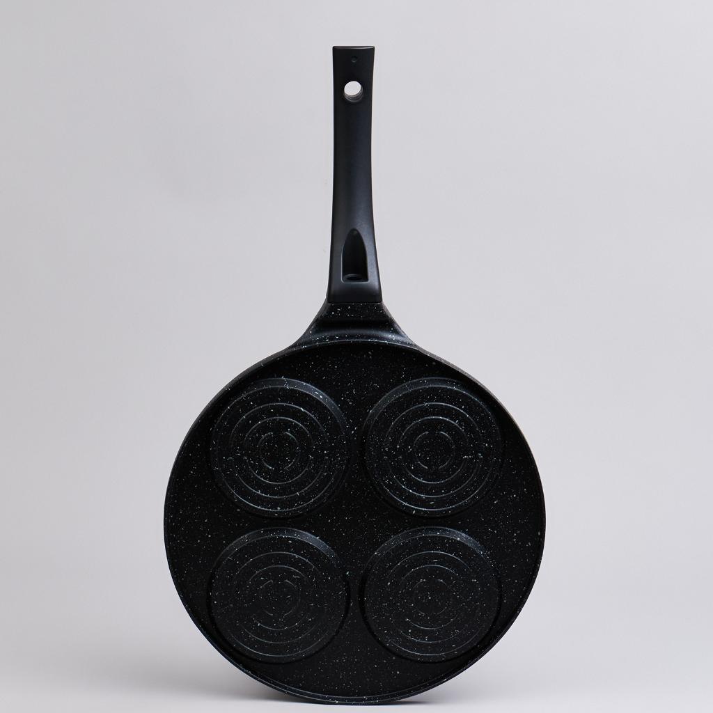 - Корпус сковороды выполнен из литого алюминия, что обеспечивает равномерное распределение тепла по всей поверхности изделия;