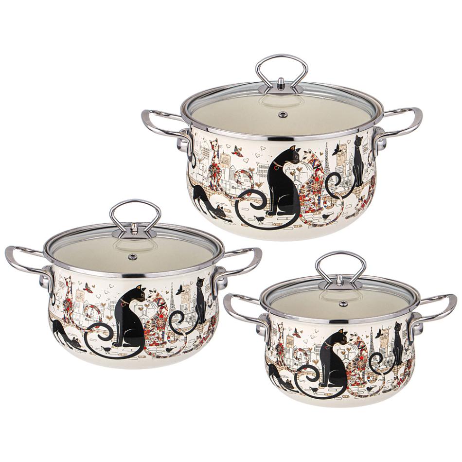 Набор эмалированных кастрюль с крышкой "ПАРИЖСКИЕ КОТЫ", 6 предметов