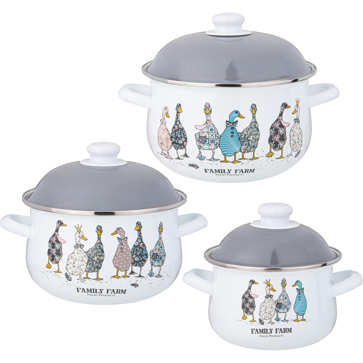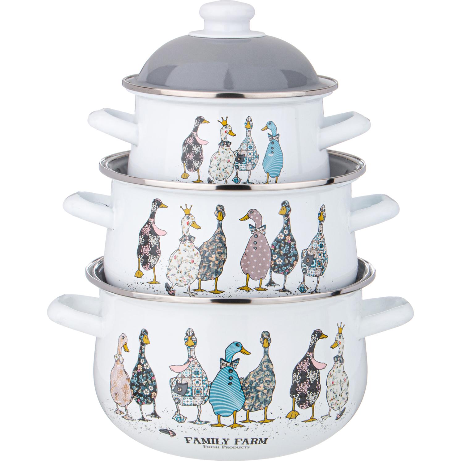 Набор эмалированных кастрюль с крышкой "FAMILY FARM", 6 предметов