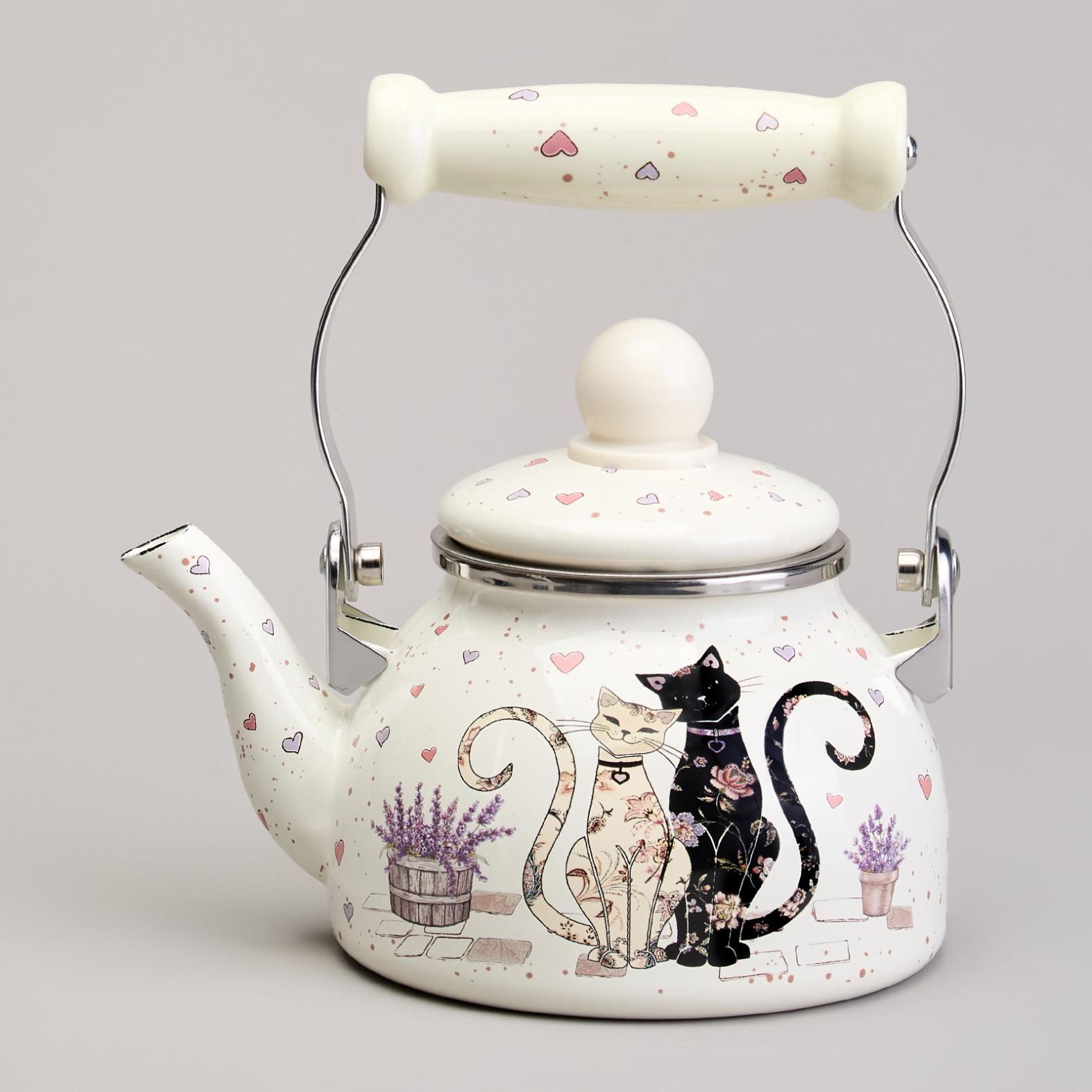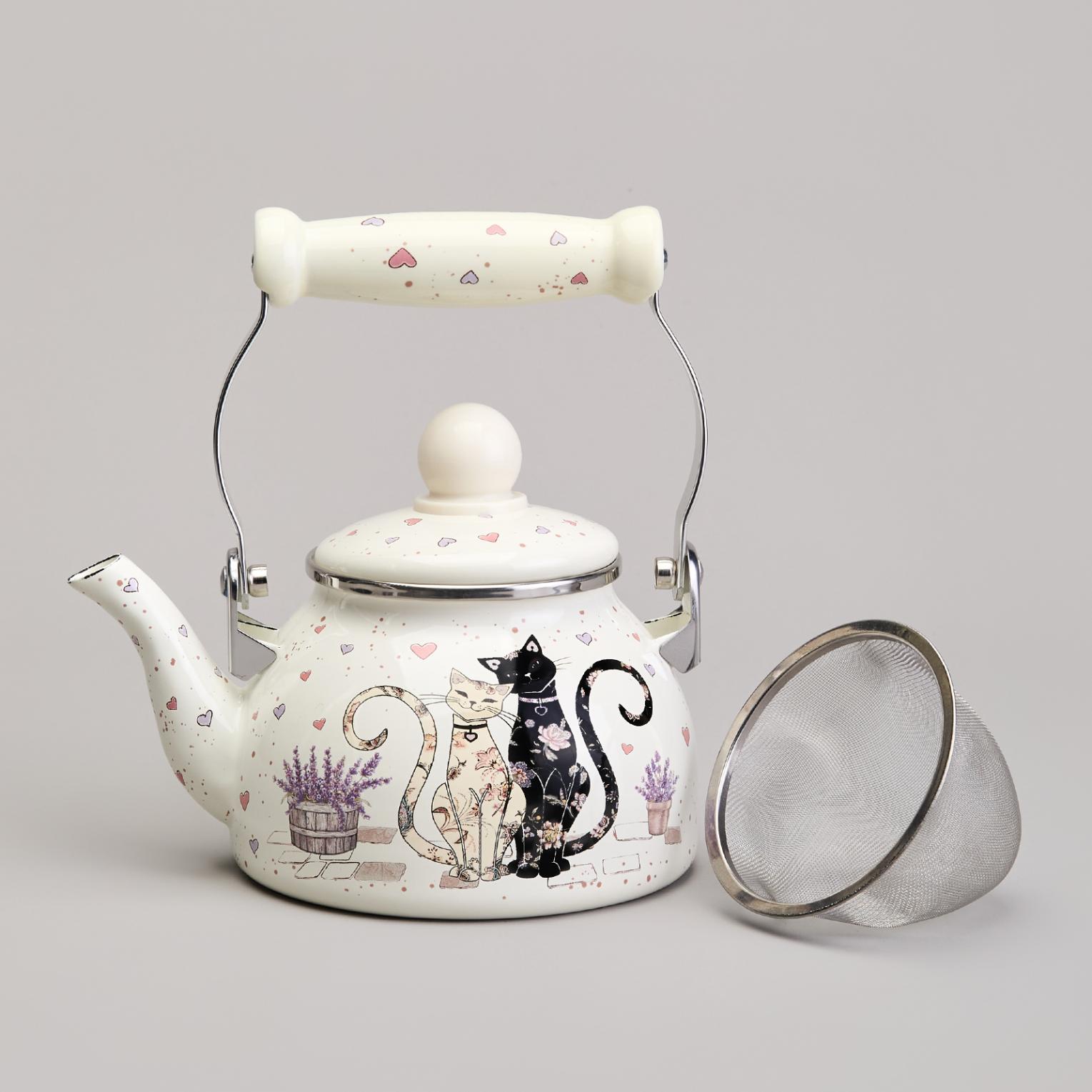 Чайник эмалированный со съёмным фильтром "LAVANDER CATS", 0,85 л
