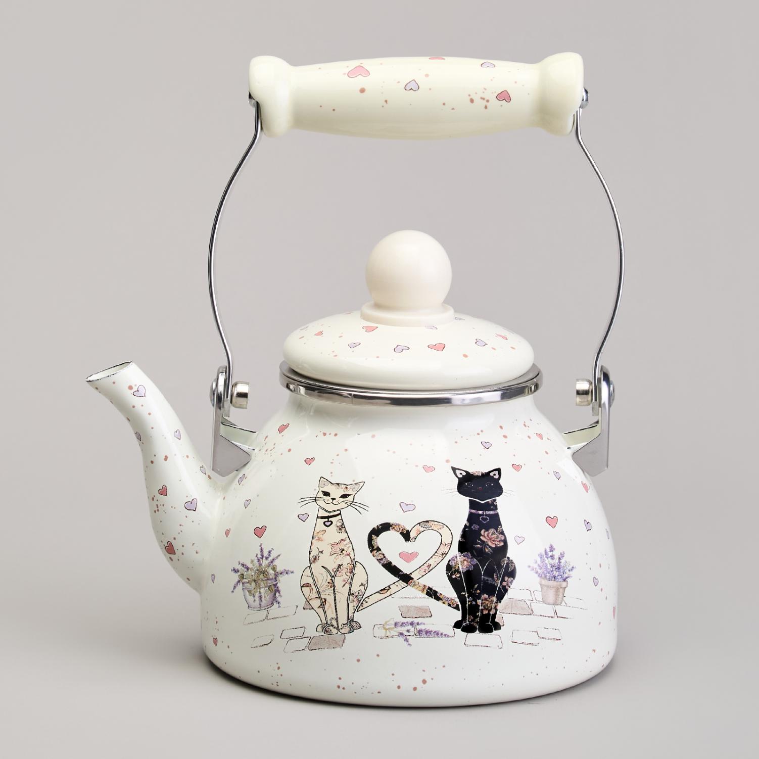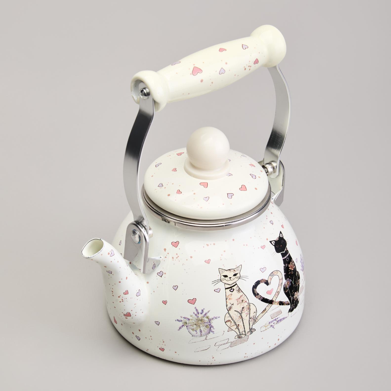 Чайник эмалированный со съёмным фильтром "LAVANDER CATS", 1,1 л