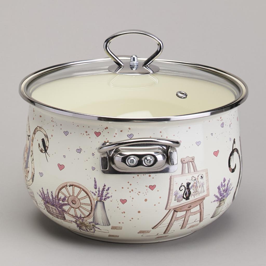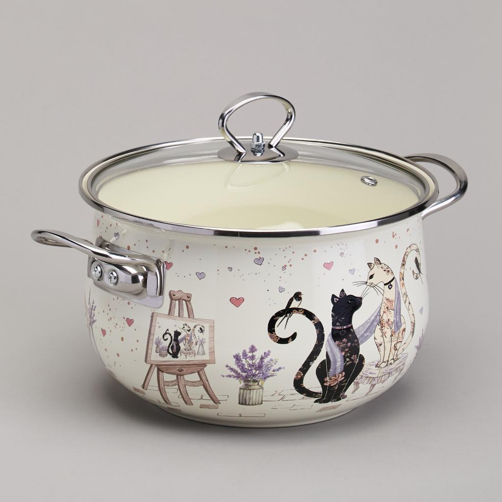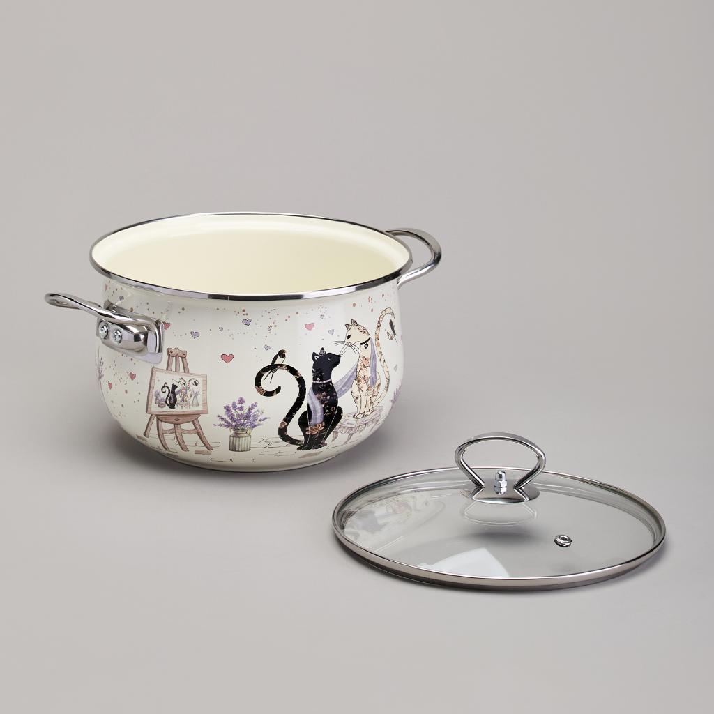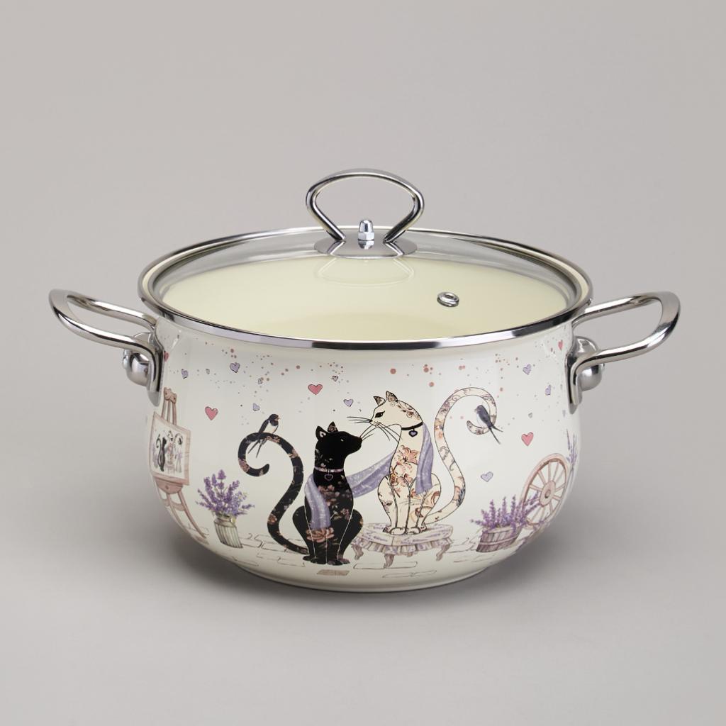 Кастрюля эмалированная со стеклянной крышкой "LAVANDER CATS", 3,8 л