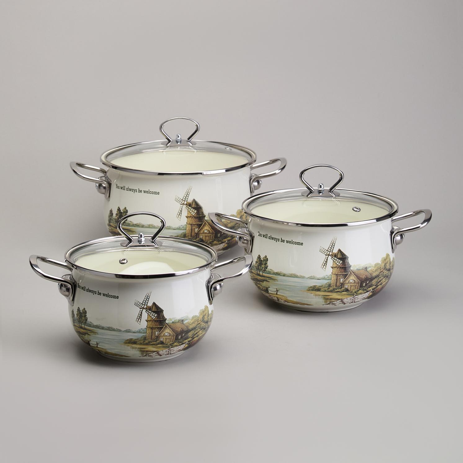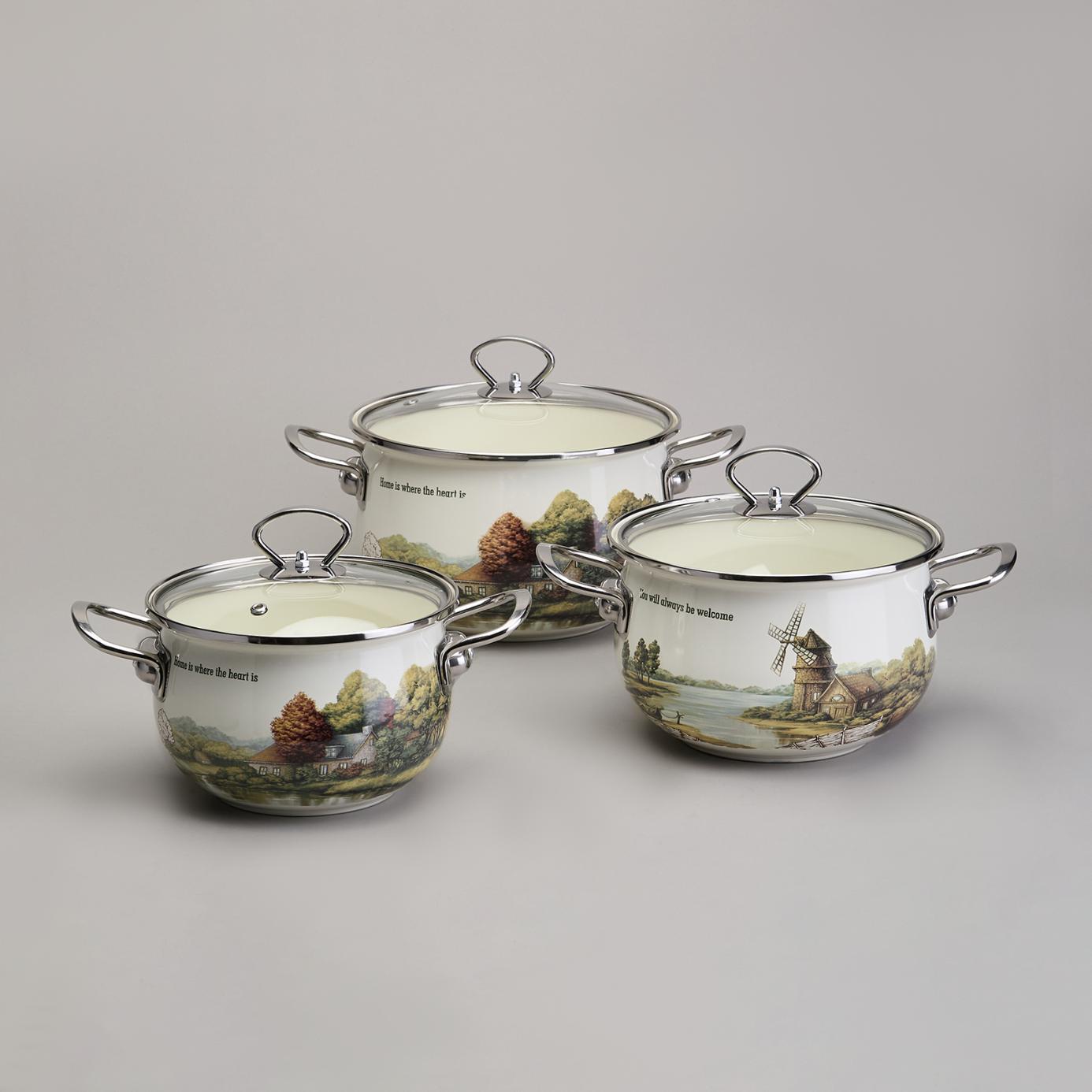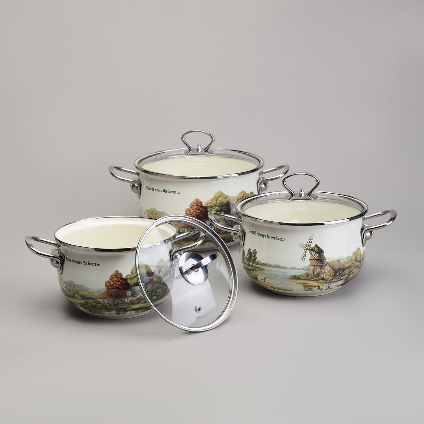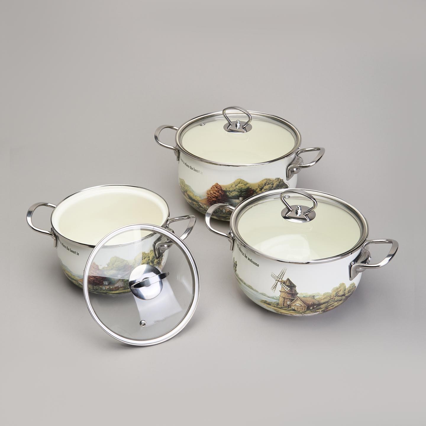 Набор эмалированных кастрюль с крышкой "FAMILY HOUSE", 6 предметов
