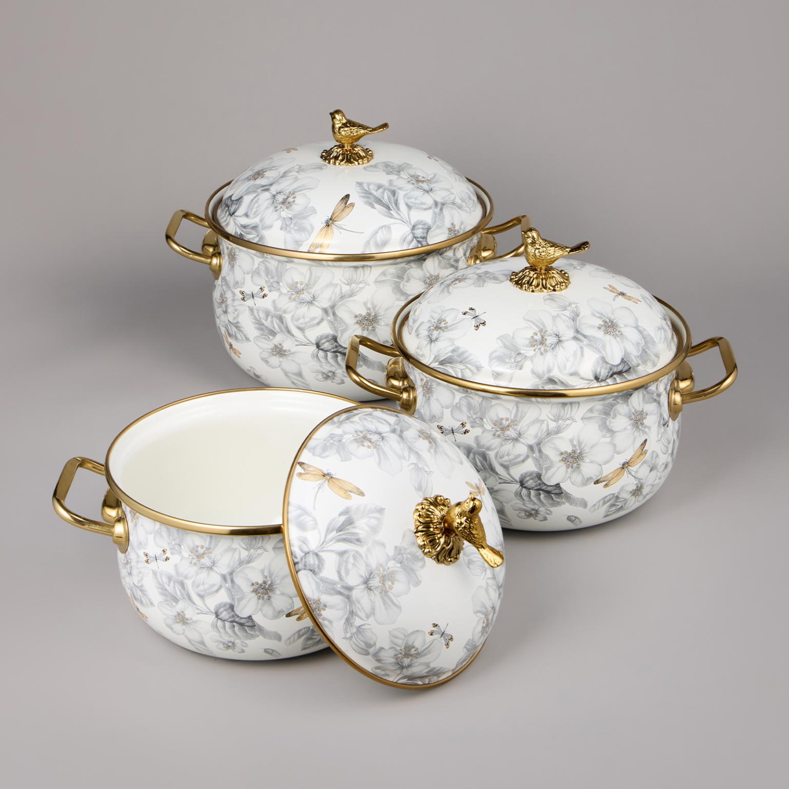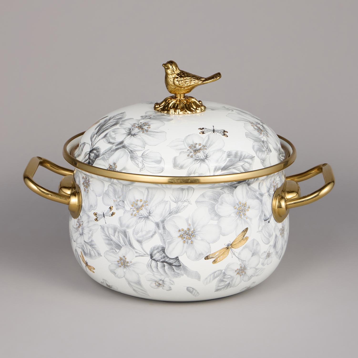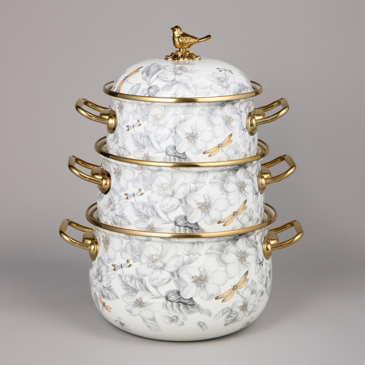 Набор эмалированных кастрюль с крышкой "ЯБЛОНЕВЫЙ САД", 6 предметов