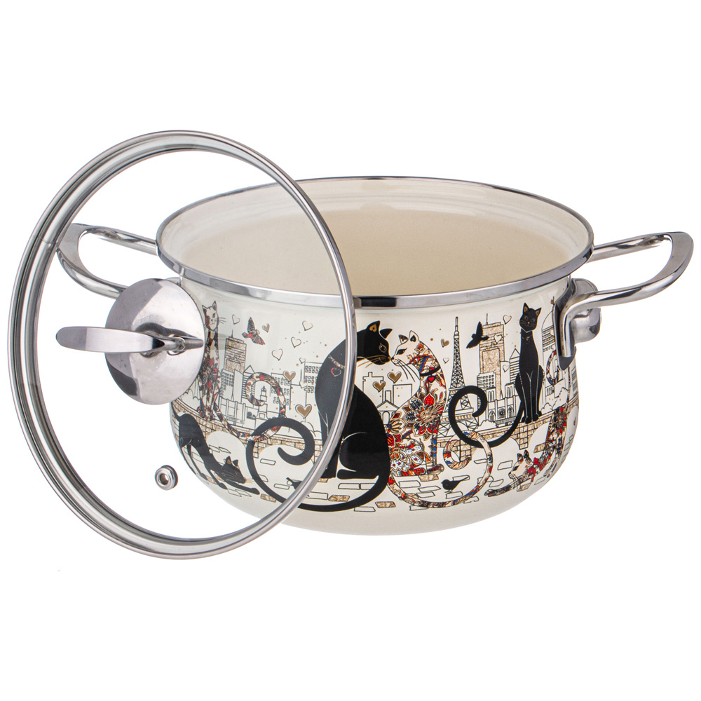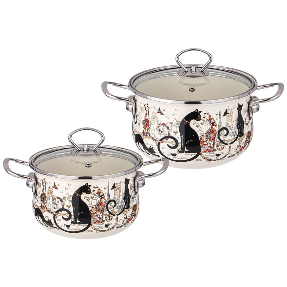 Набор эмалированных кастрюль с крышкой "ПАРИЖСКИЕ КОТЫ", на 4 предмета