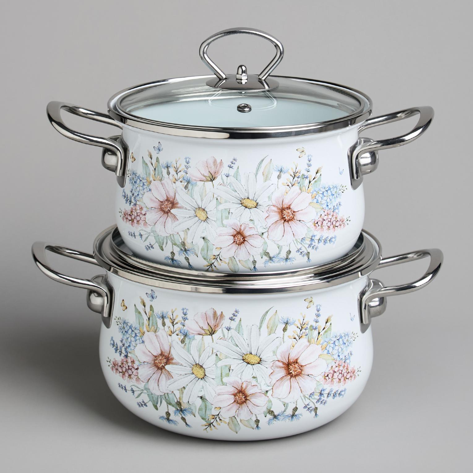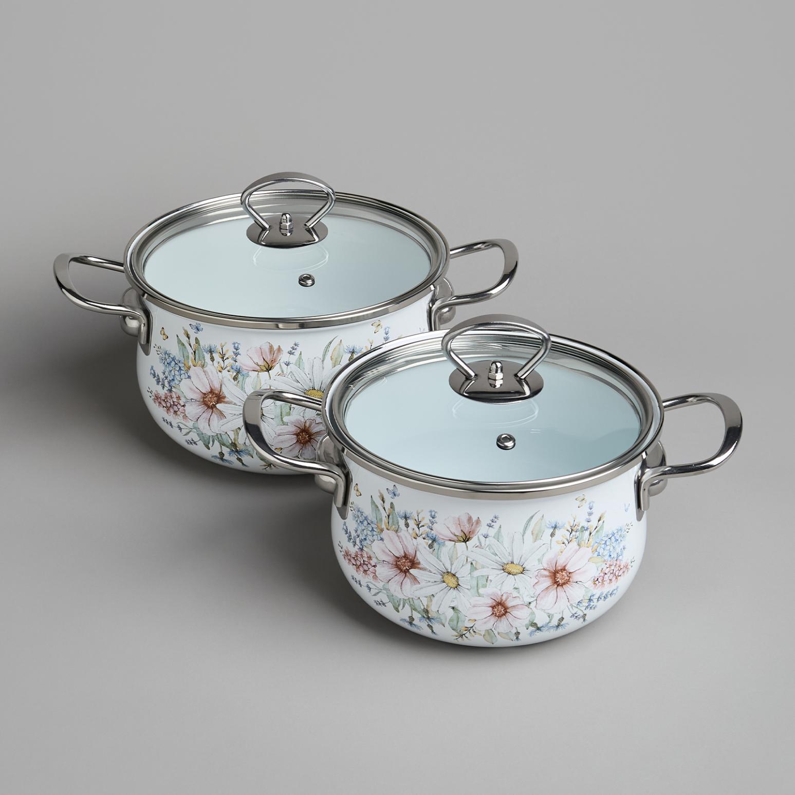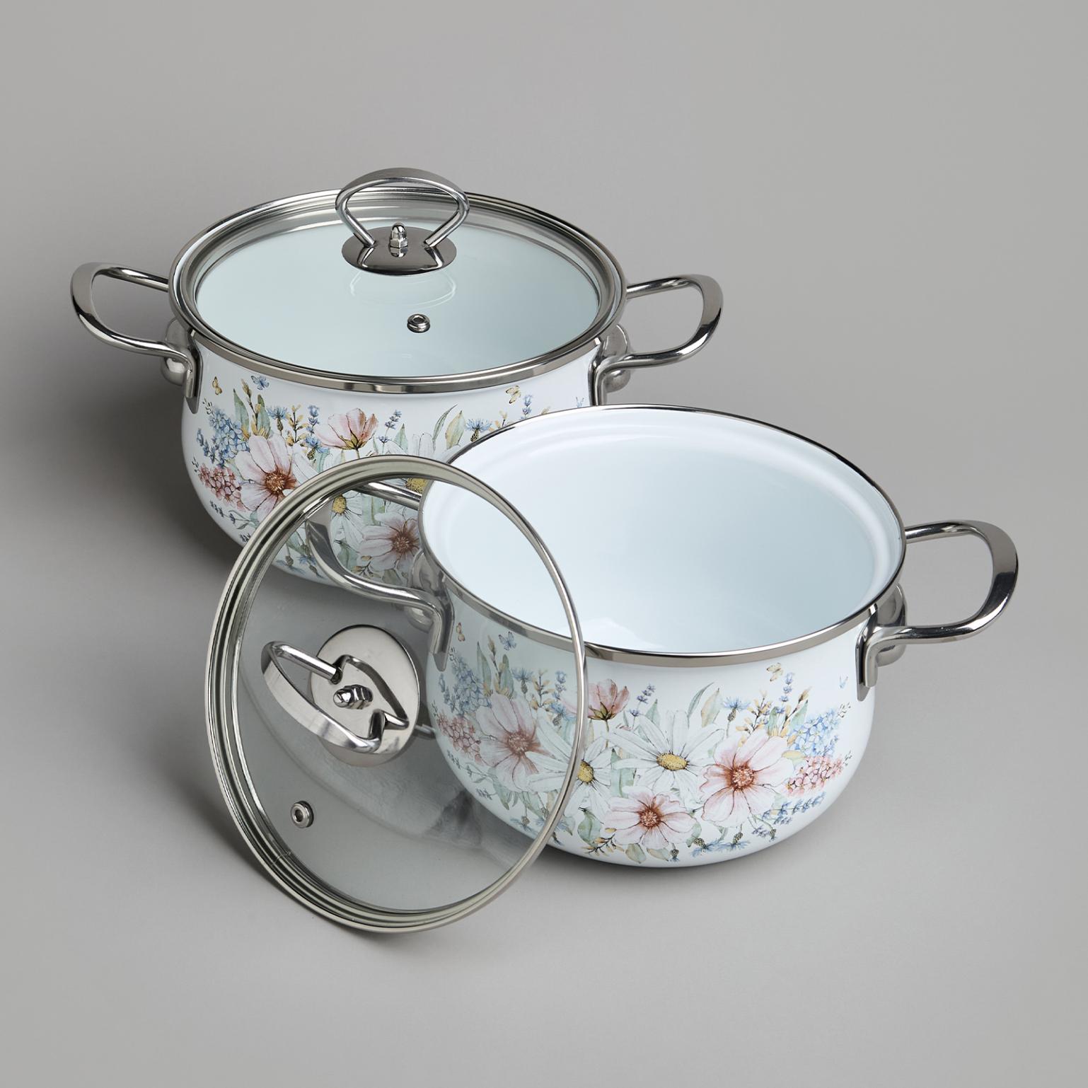 Набор эмалированных кастрюль с крышкой "ДВОРЦОВЫЙ ПАРК", на 4 предмета