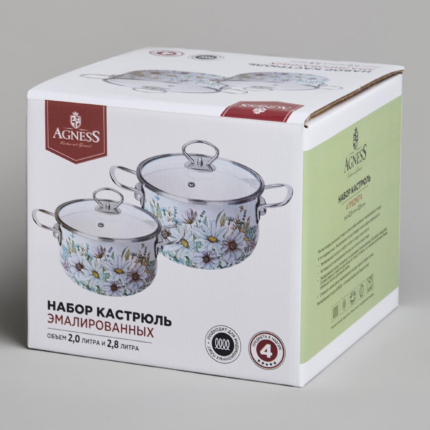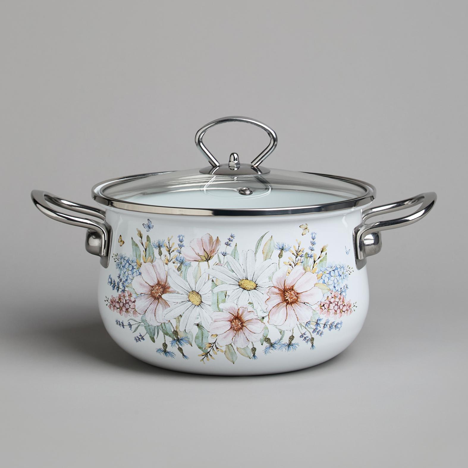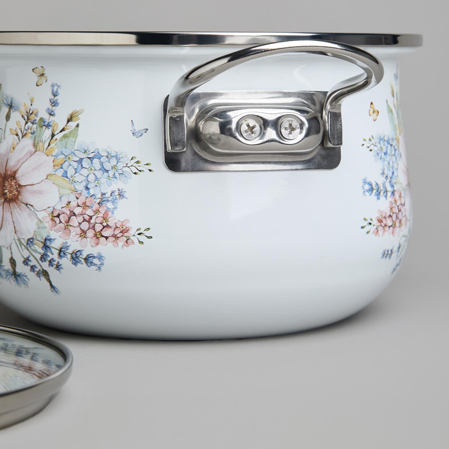 Набор эмалированных кастрюль с крышкой "ДВОРЦОВЫЙ ПАРК", на 4 предмета