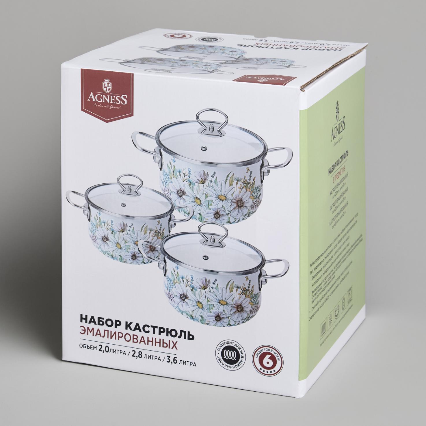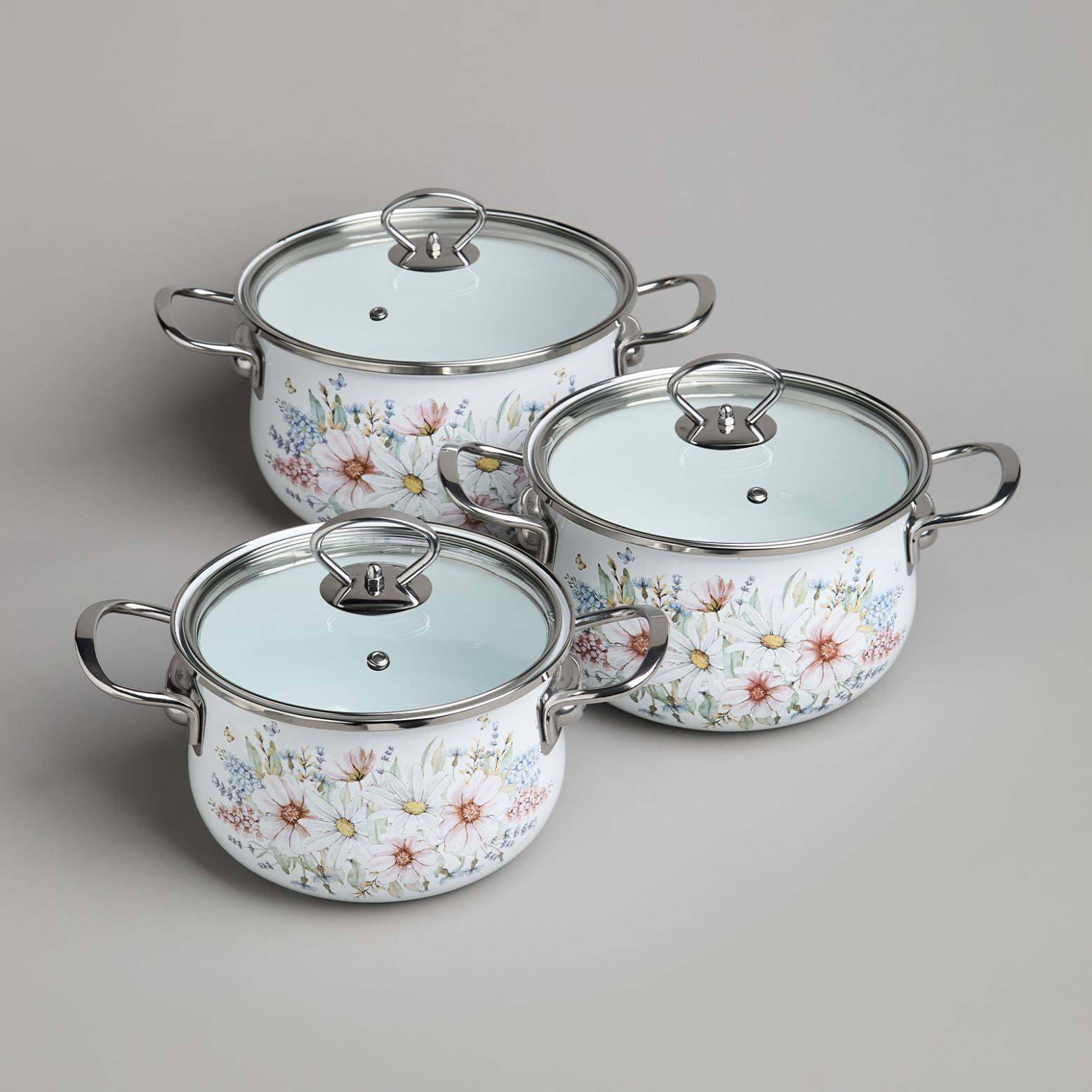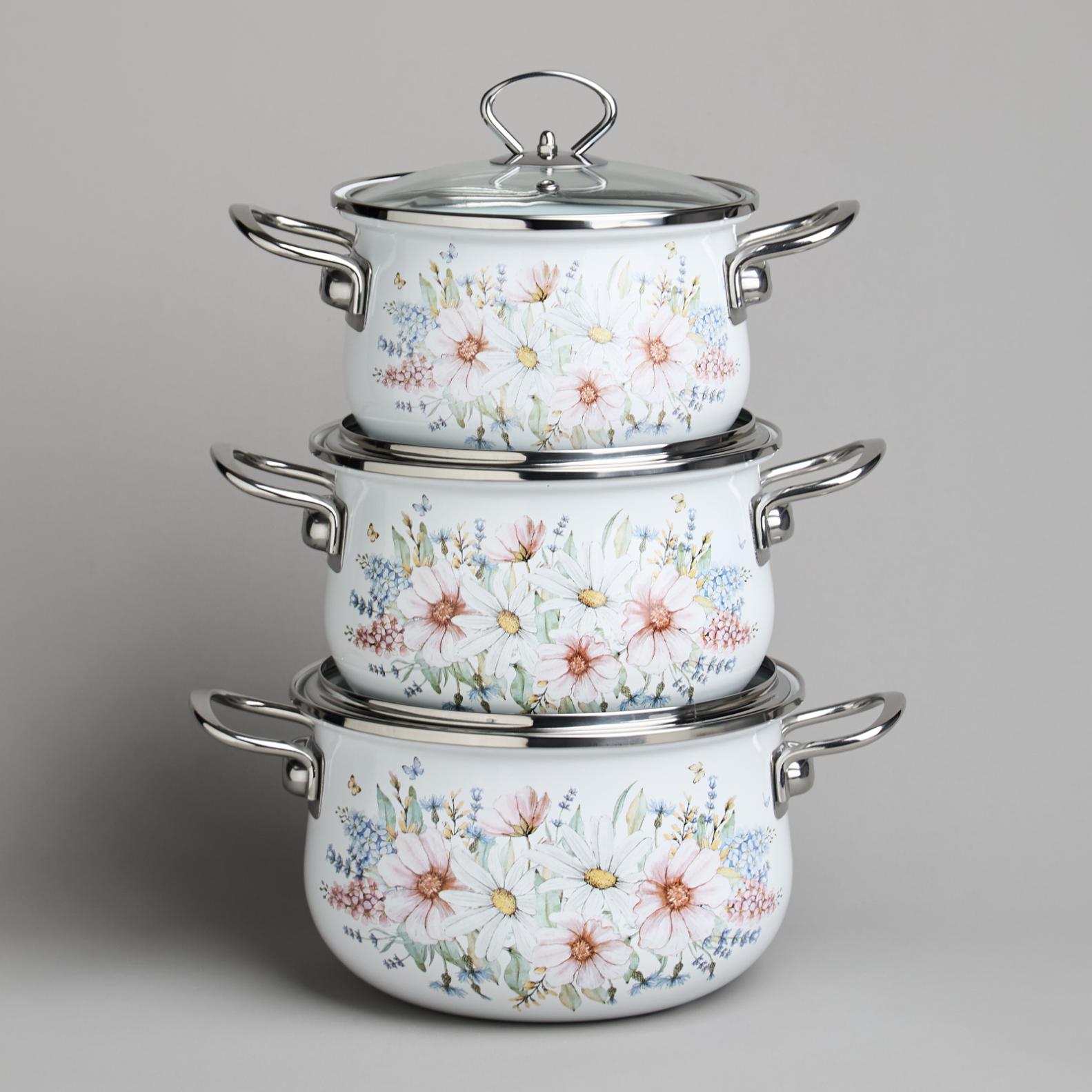 Набор эмалированных кастрюль с крышкой "ДВОРЦОВЫЙ ПАРК", на 6 предметов