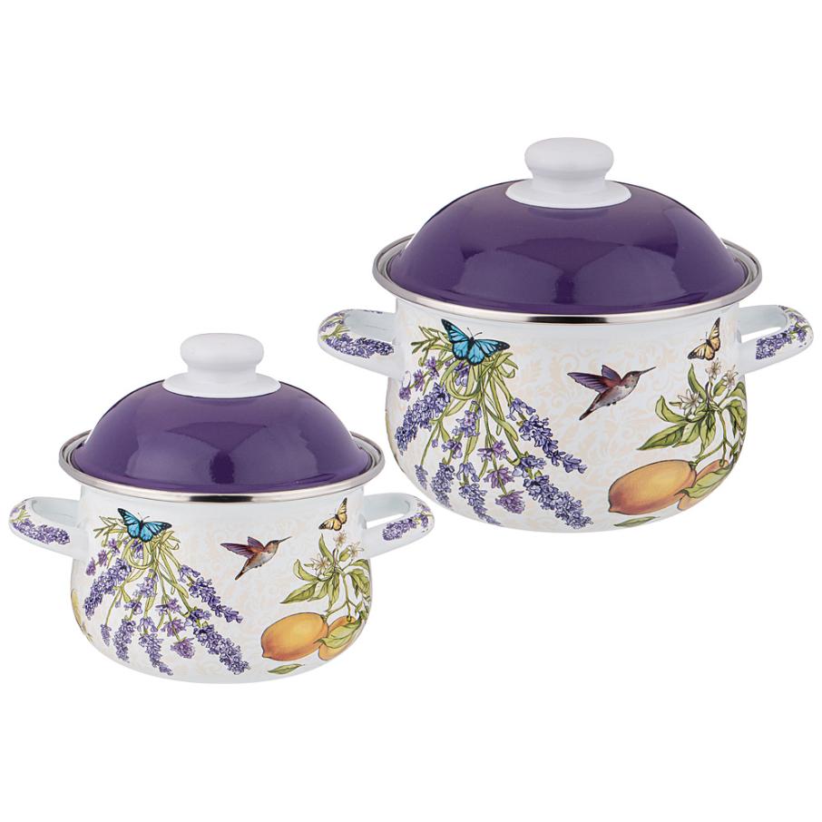 Набор эмалированных кастрюль с крышкой "ПРОВАНС ЛИМОНЫ" , на 4 предмета