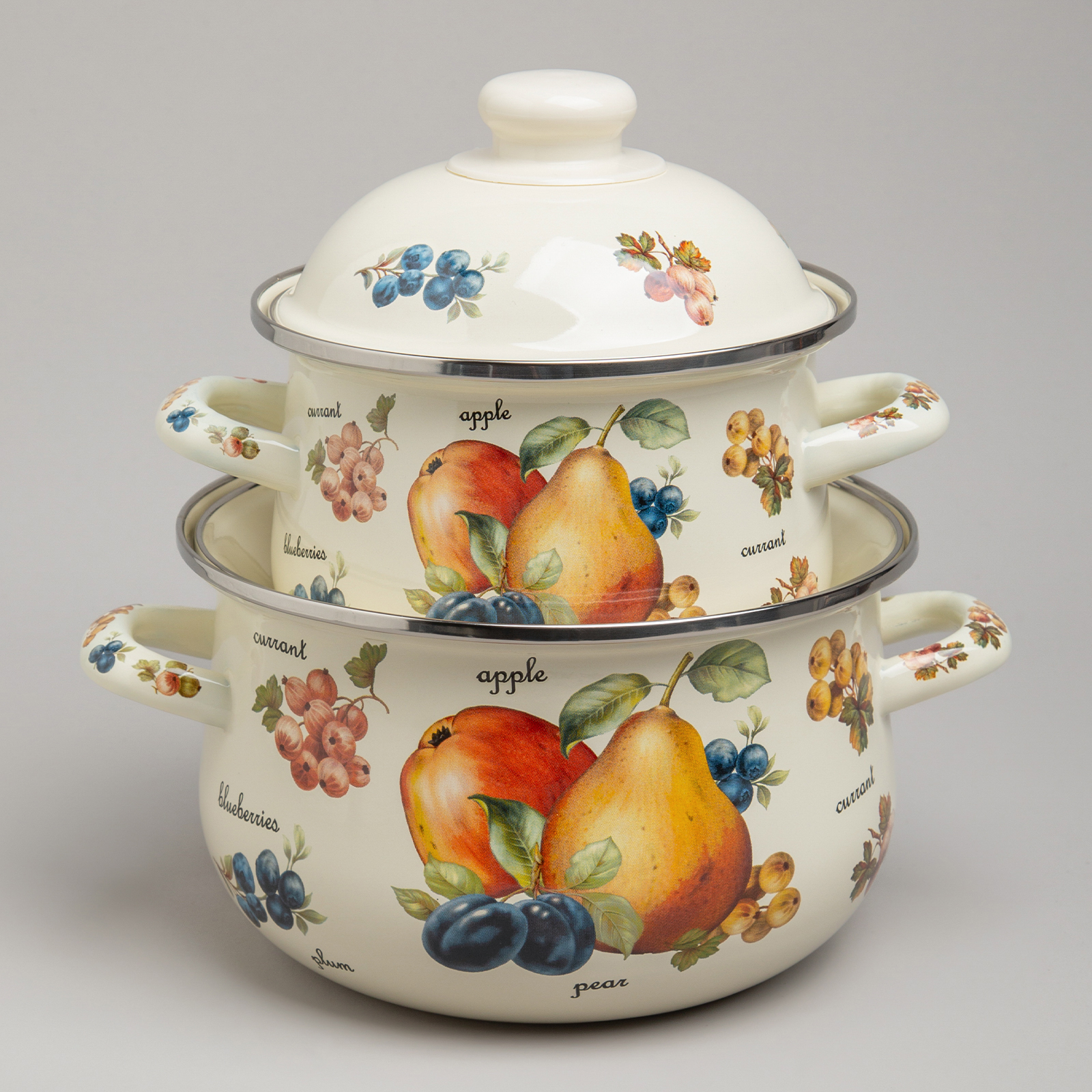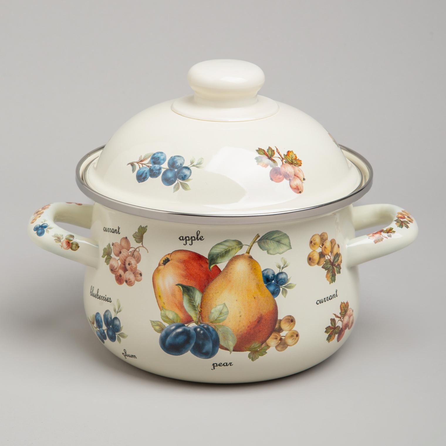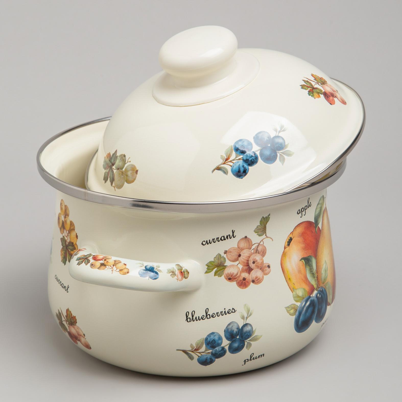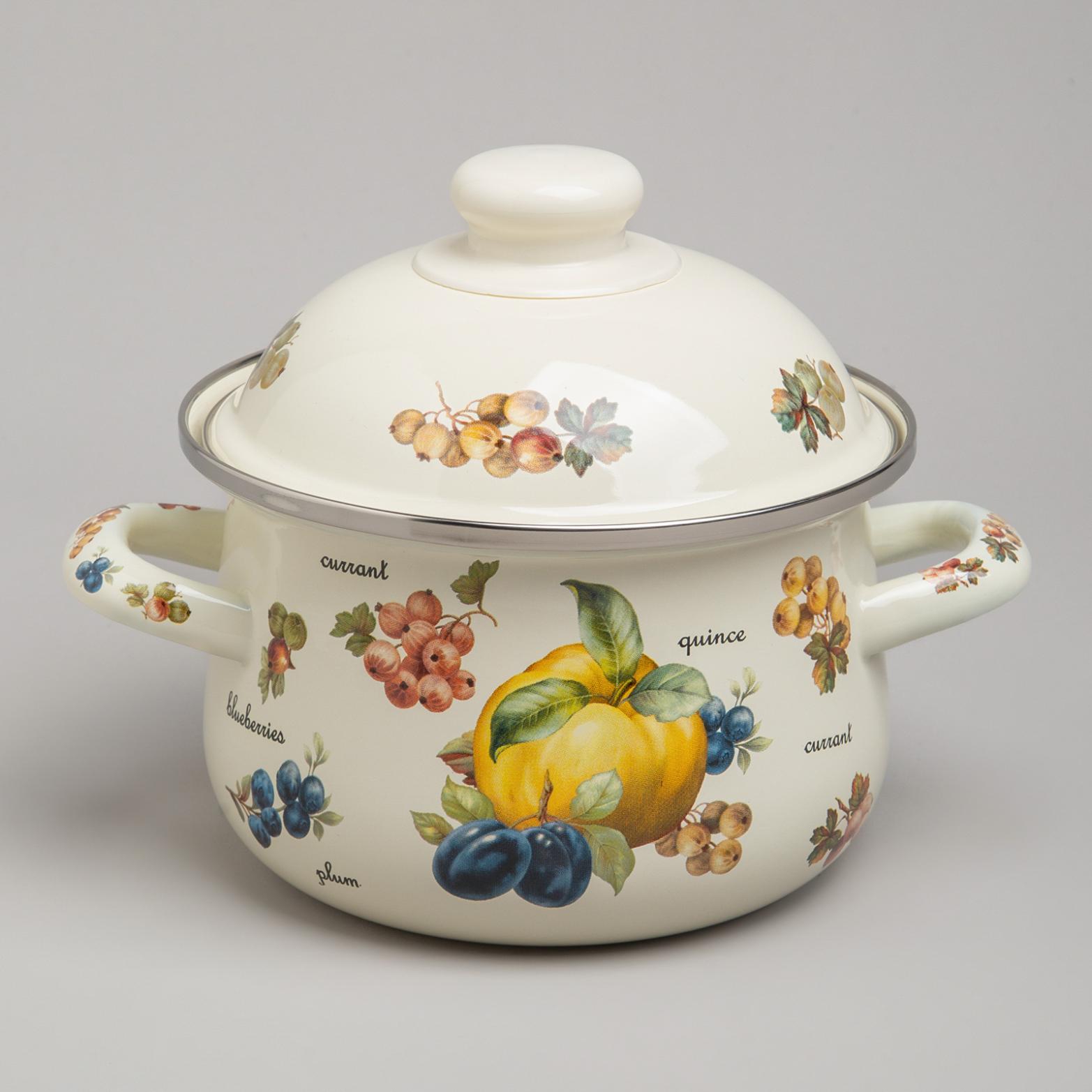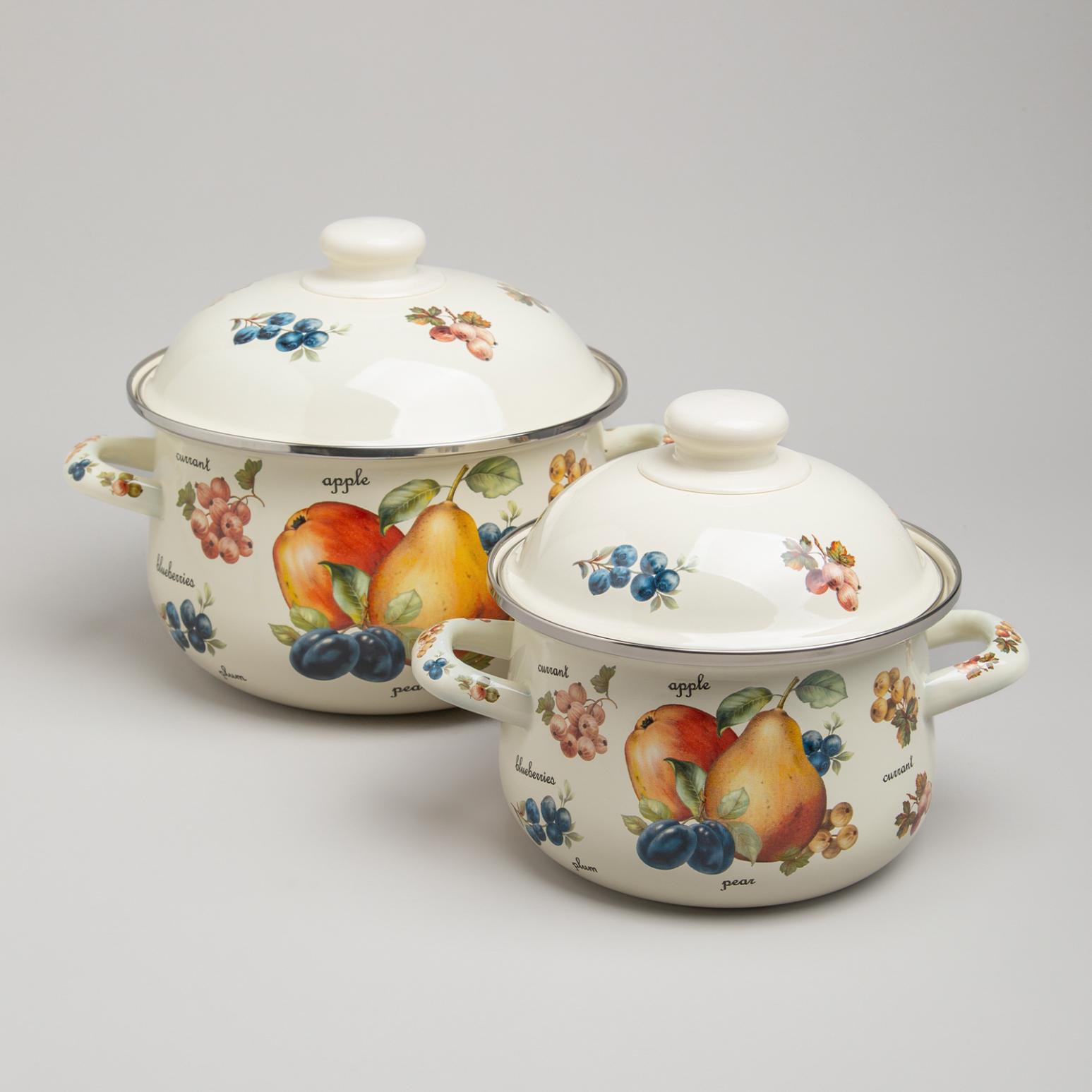 Набор эмалированных кастрюль с крышкой "ФРУКТЫ", на 4 предмета