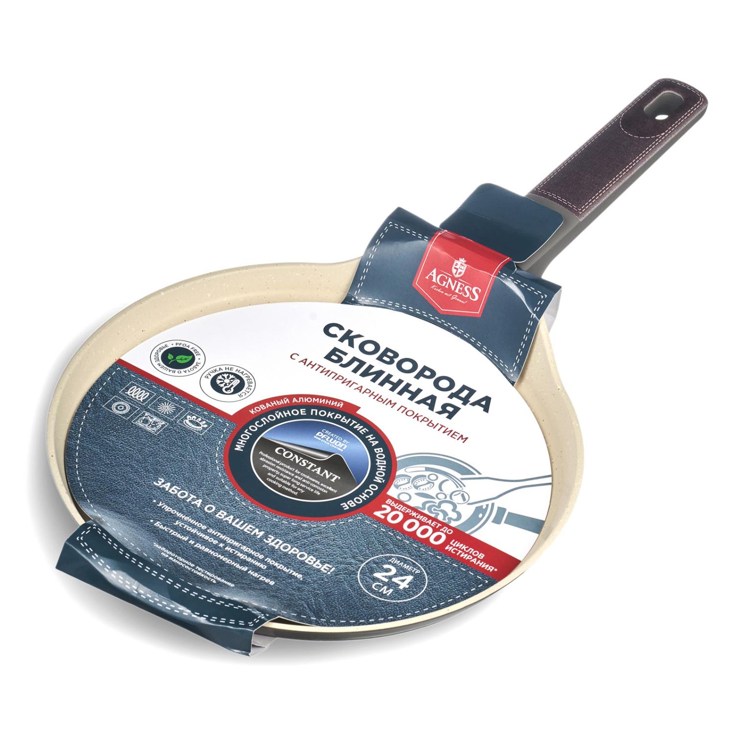Сковорода блинная AGNESS "PFLUON MARBLE" 902-107, диаметр 24 см