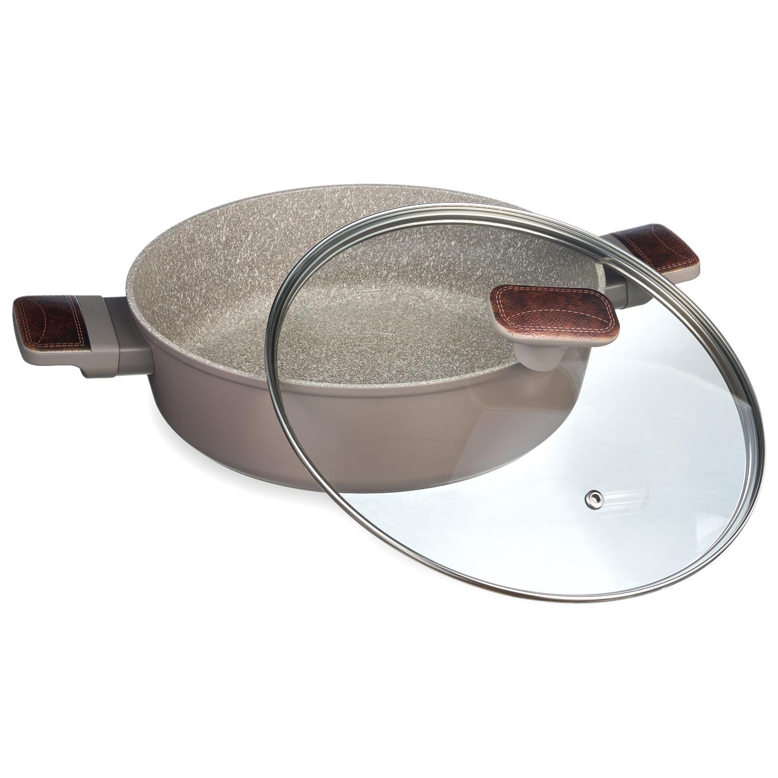 Сотейник с крышкой "AGNESS" 902-115 с антипригарным покрытием PFLUON MARBLE, 26*7,5 см