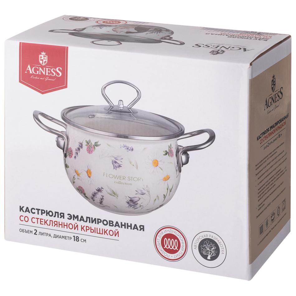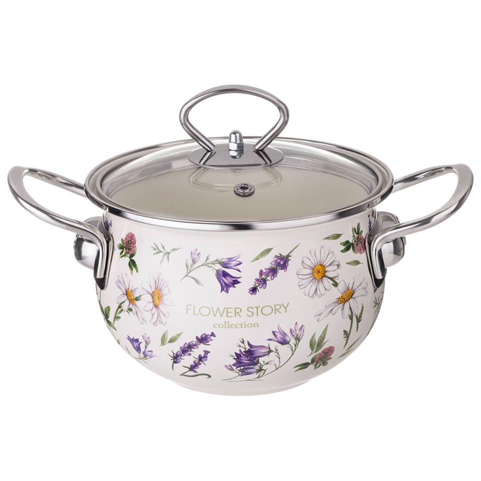 Кастрюля эмалированная со стеклянной крышкой "FLOWER STORY", 2,0 л