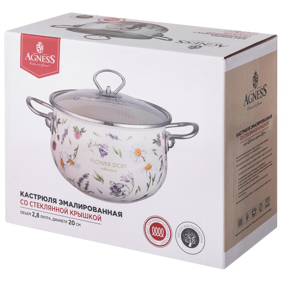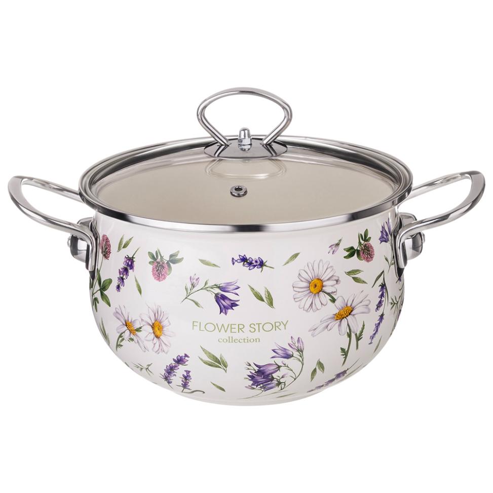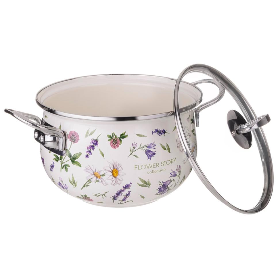 Кастрюля эмалированная со стеклянной крышкой "FLOWER STORY", 2,8 л