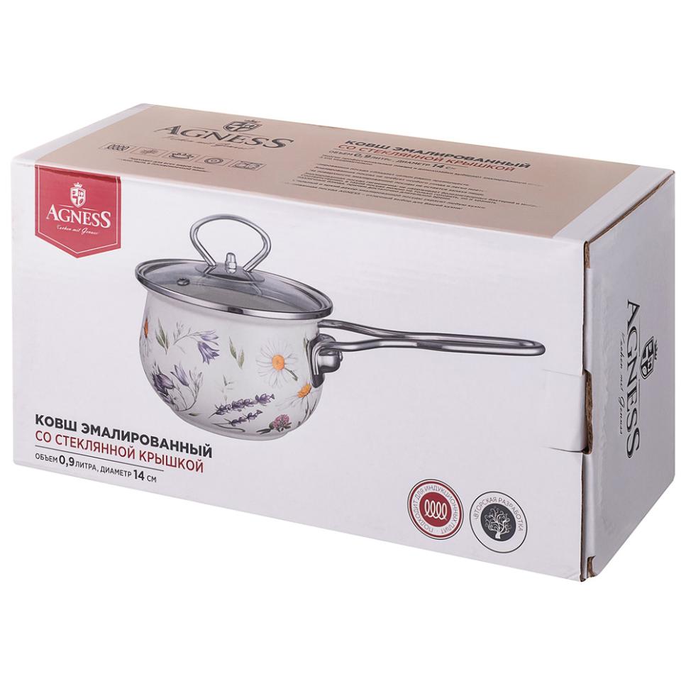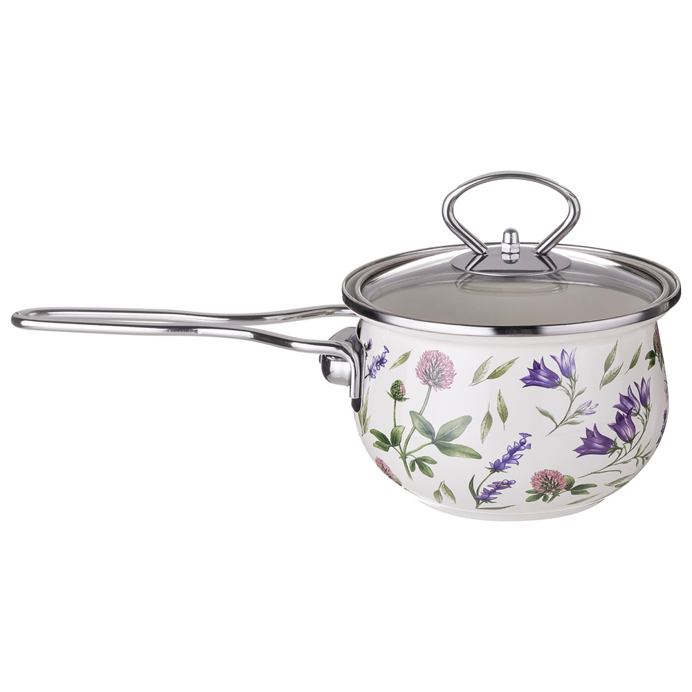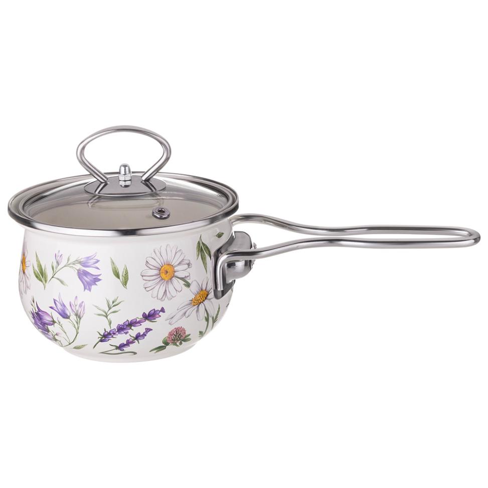 Ковш эмалированный со стеклянной крышкой "FLOWER STORY", 0,9 л
