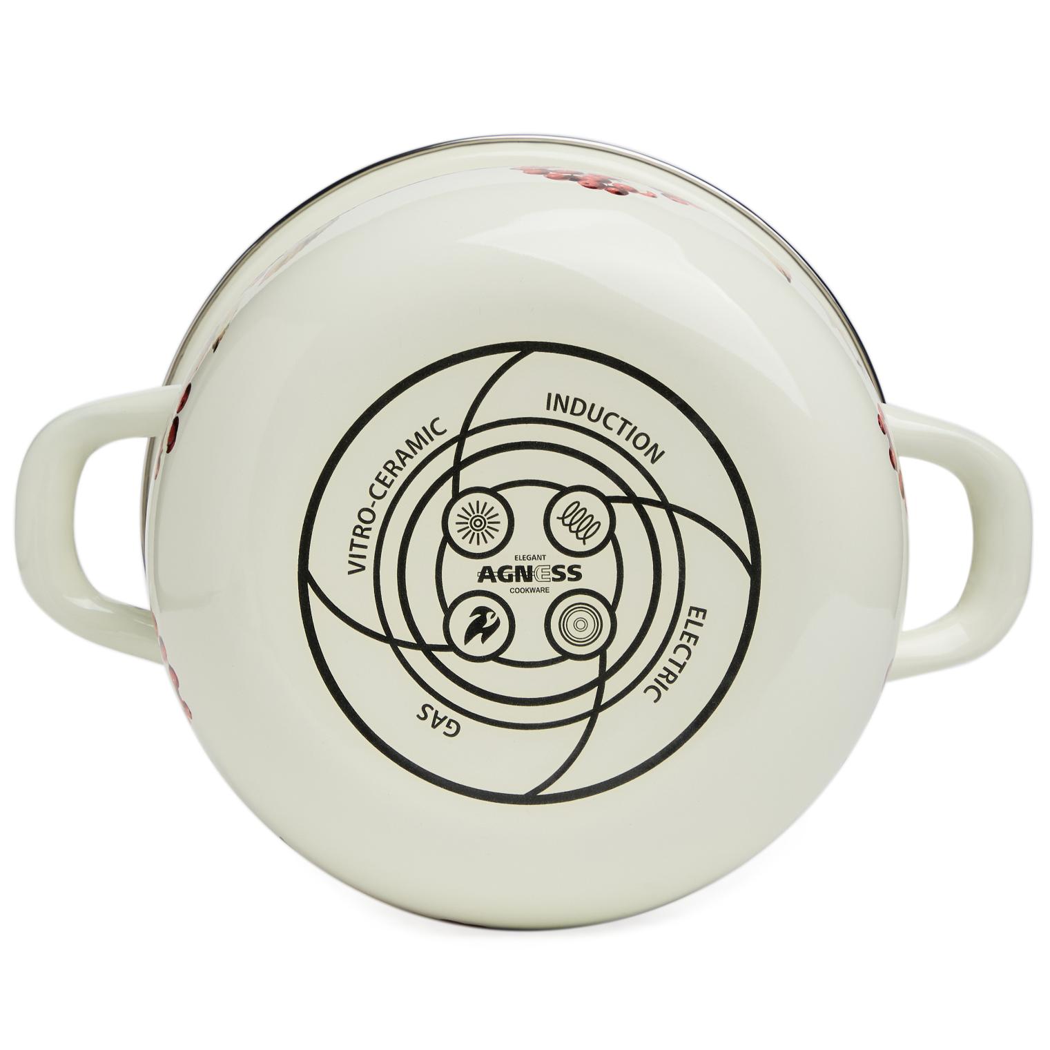 Кастрюли с крышкой данной серии ТМ "Agness" изготовлены из стали с эмалированным покрытием и подходят для газовой, электрической и индукционной плиты.