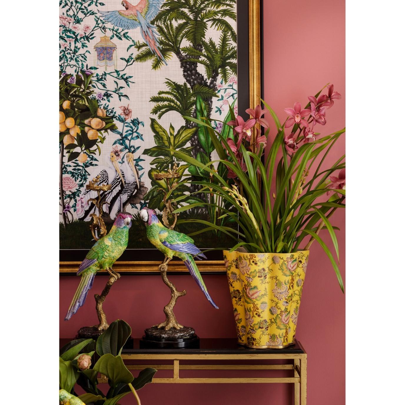Роскошная ваза ручной работы из желтого фарфора с китайскими цветами на бронзовом основании.