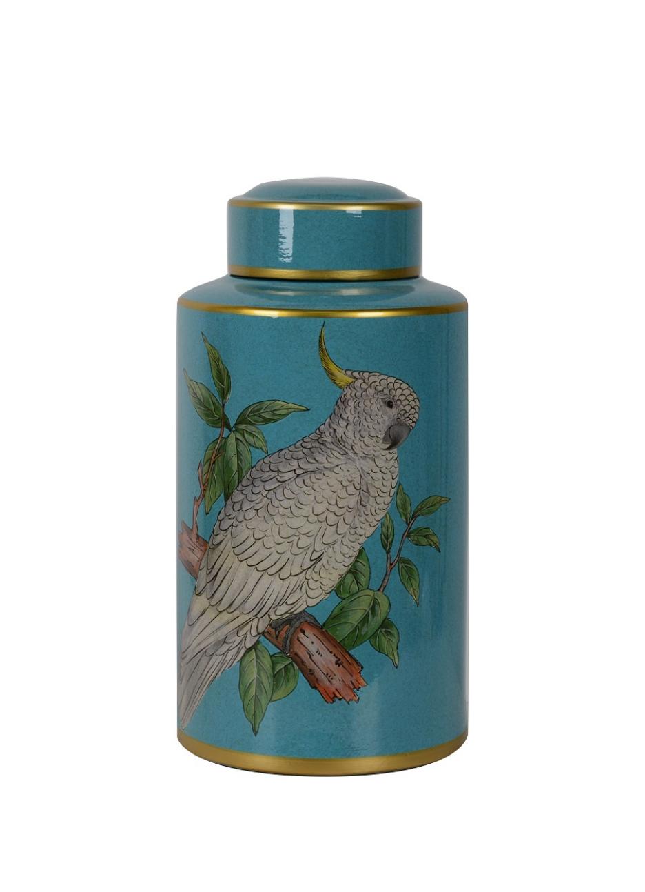 Ваза с крышкой "PARROTS" попугаи (бирюзовый) керамика, высота 37,5 см