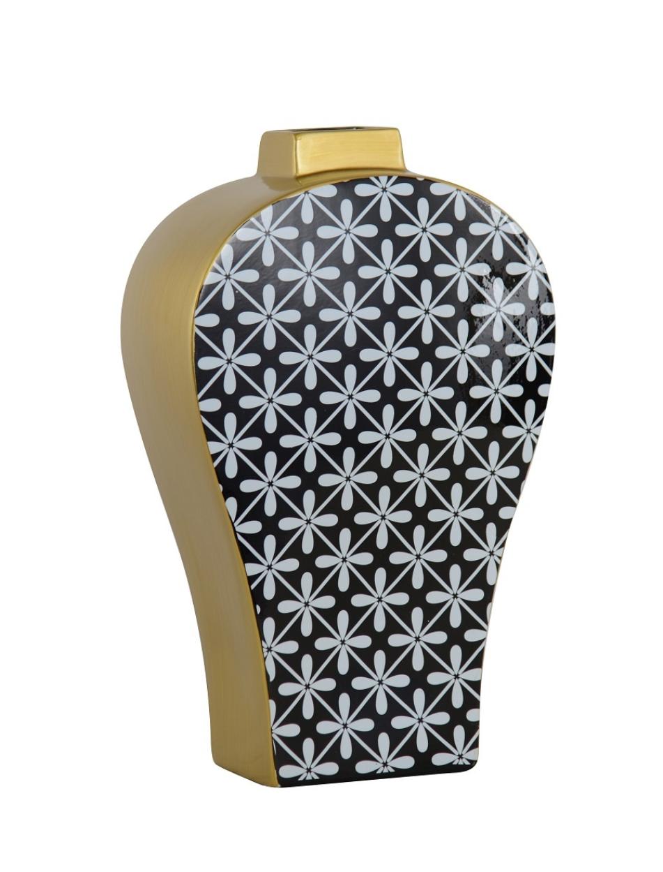 Ваза плоская "TANGER" (черно-белая) керамика, 25x13x41 см