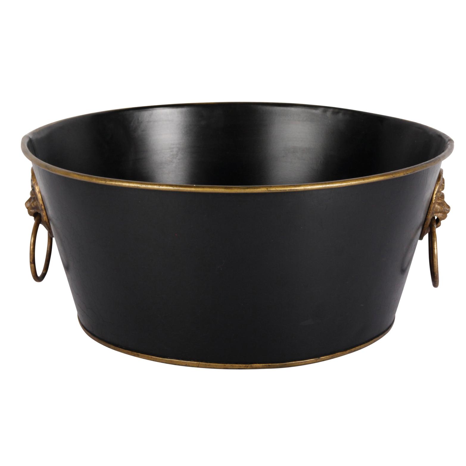 Изысканное круглое кашпо ручной работы с ручками в виде львиных голов.