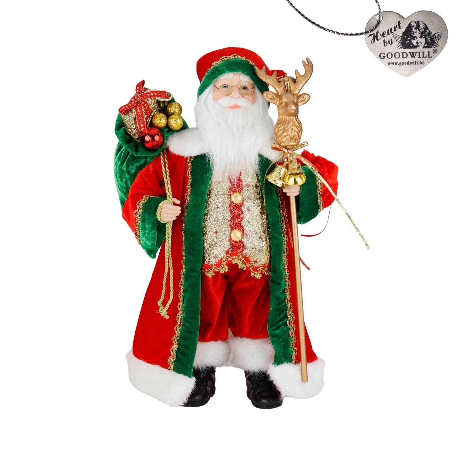 Санта с мешком "GOODWILL" (красный с зеленым и золотом), высота 46 см