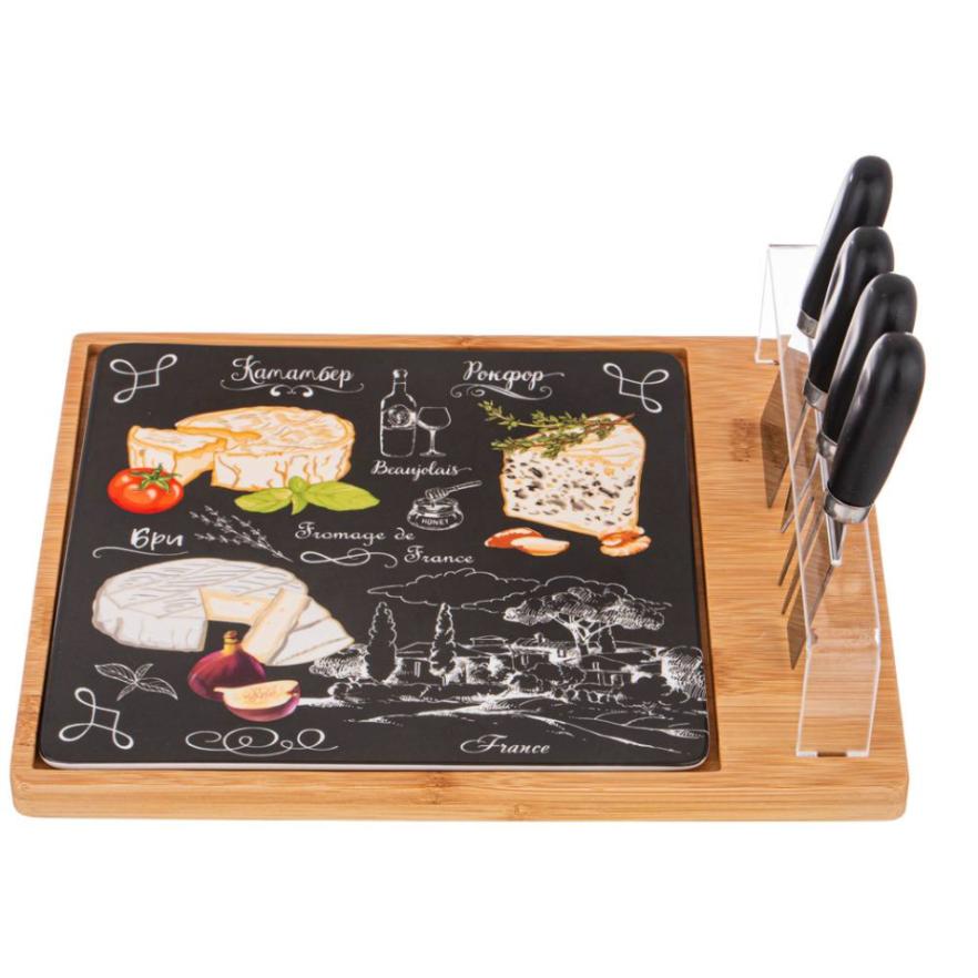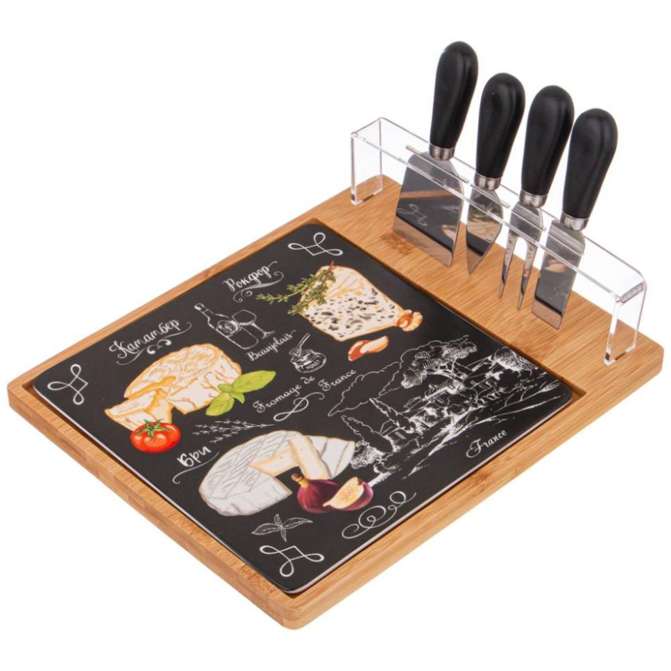 Набор для сыра "СЕКРЕТНЫЕ ИНГРЕДИЕНТЫ" (чёрный) 5 предметов, 28*23 см