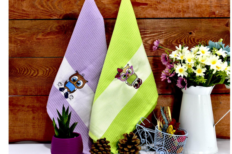 Набор вафельных салфеток "СОВА" 40х60-2шт. (зеленый+фиолетовый)