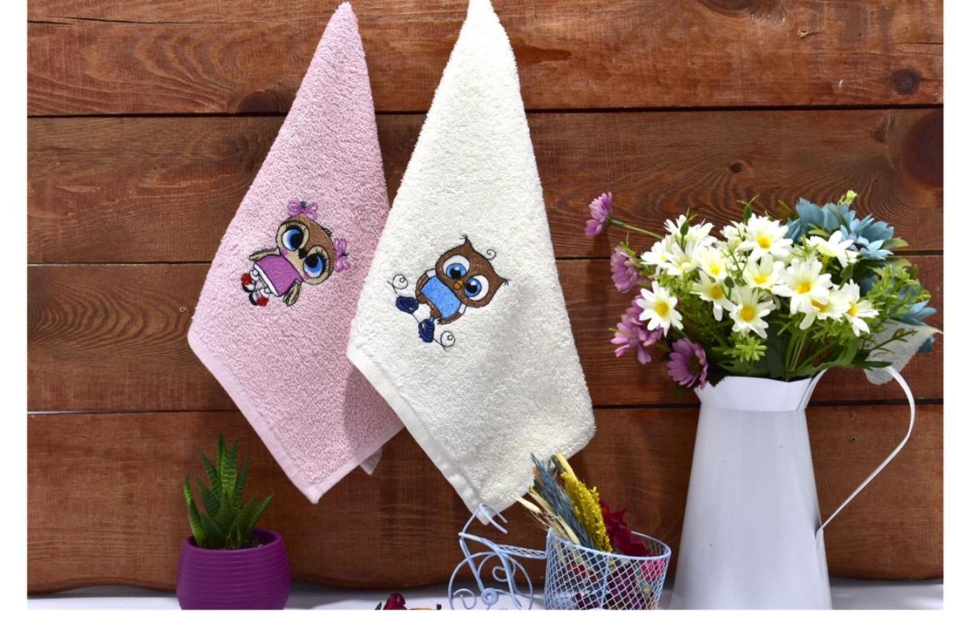Набор махровых салфеток "СОВА" 30х50-2шт. (крем+розовый)