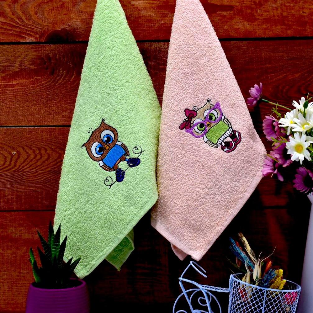 Набор махровых салфеток "СОВА" 30х50-2шт. (персик+зеленый)