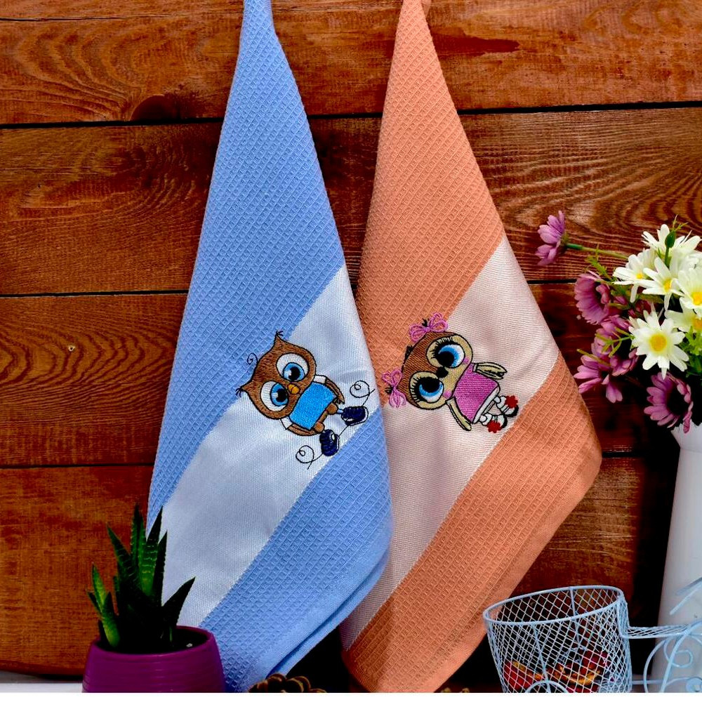 Набор вафельных салфеток "СОВА" 40х60-2шт. (голубой+оранжевый)
