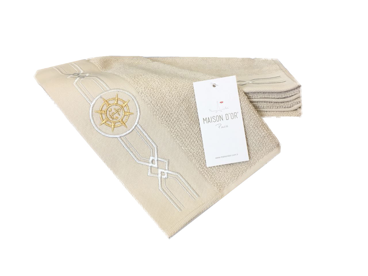 Салфетки махровые с вышивкой Maison D'or "ELEGANZE MARIN" 30х50-4шт., бежевый
