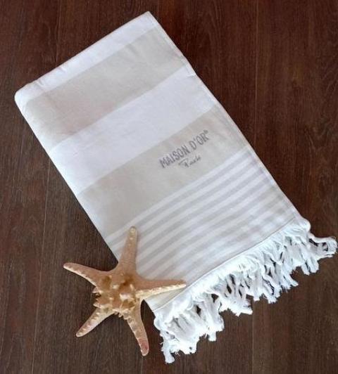 Традиционные турецкие полотенца (салфетки) выполнены из 100% хлопка. Наружная сторона - тканое полотно, внутренняя - махровая ткань. Коллекция выполнена в тёплых, пастельных тонах. С двух сторон полотенца декорированы бахромой (кистями).
