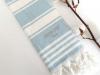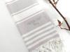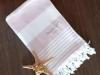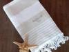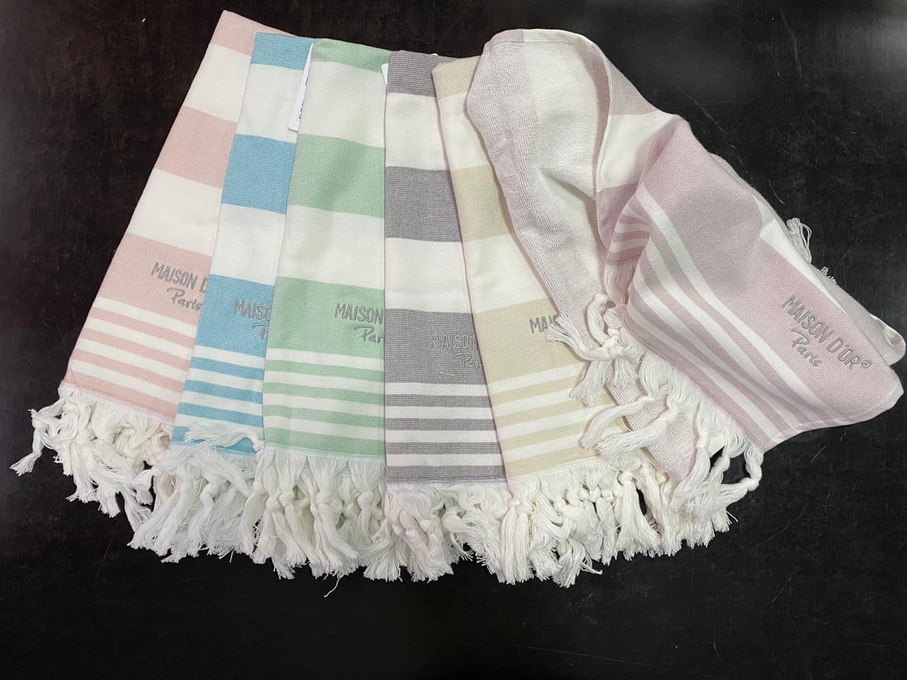 Традиционные турецкие полотенца (салфетки) выполнены из 100% хлопка. Наружная сторона - тканое полотно, внутренняя - махровая ткань. Коллекция выполнена в тёплых, пастельных тонах. С двух сторон полотенца декорированы бахромой (кистями).