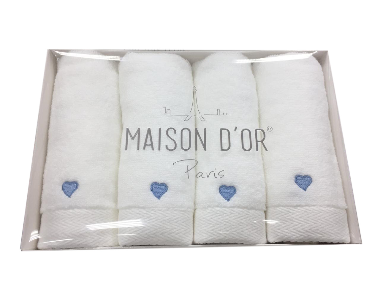 Салфетки махровые с вышивкой Maison D'or "SOFT HEARTS" 30х50-4шт., белый/голубой