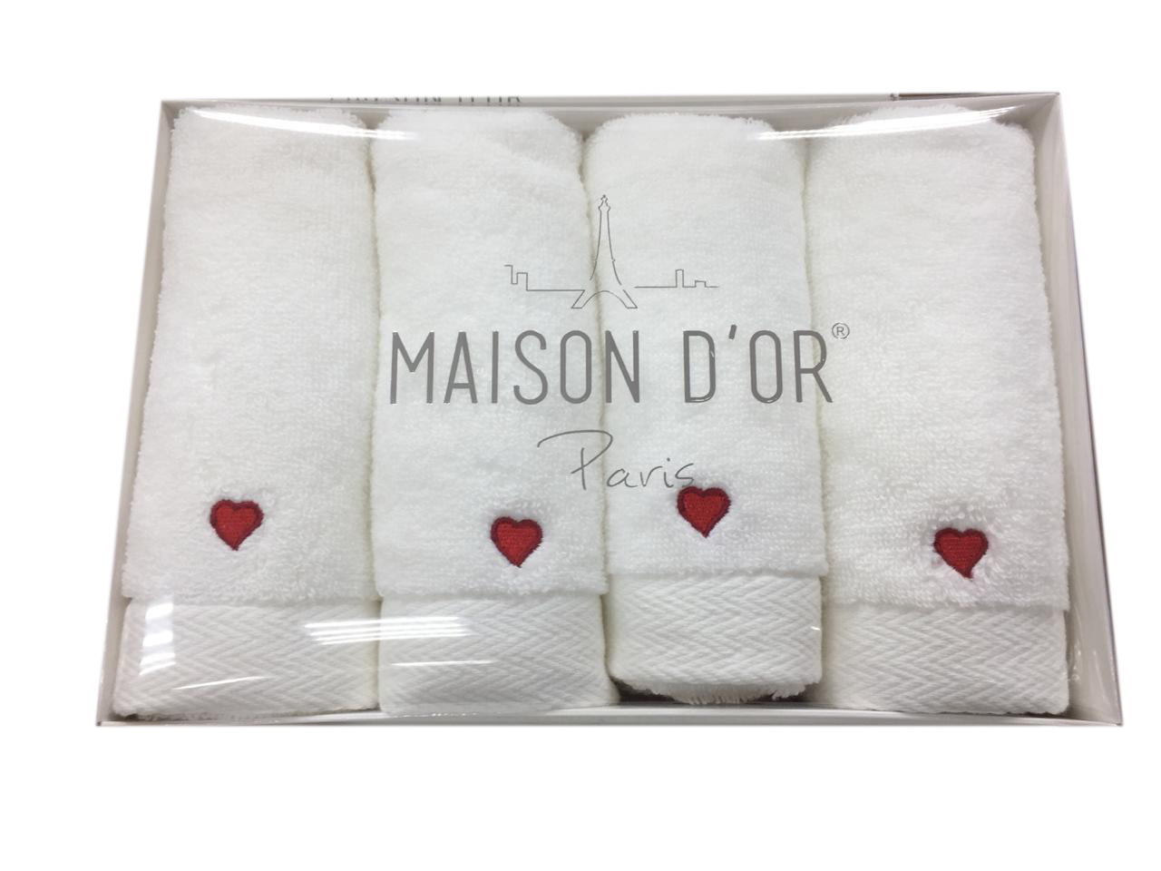 Салфетки махровые с вышивкой Maison D'or "SOFT HEARTS" 30х50-4шт., белый/красный
