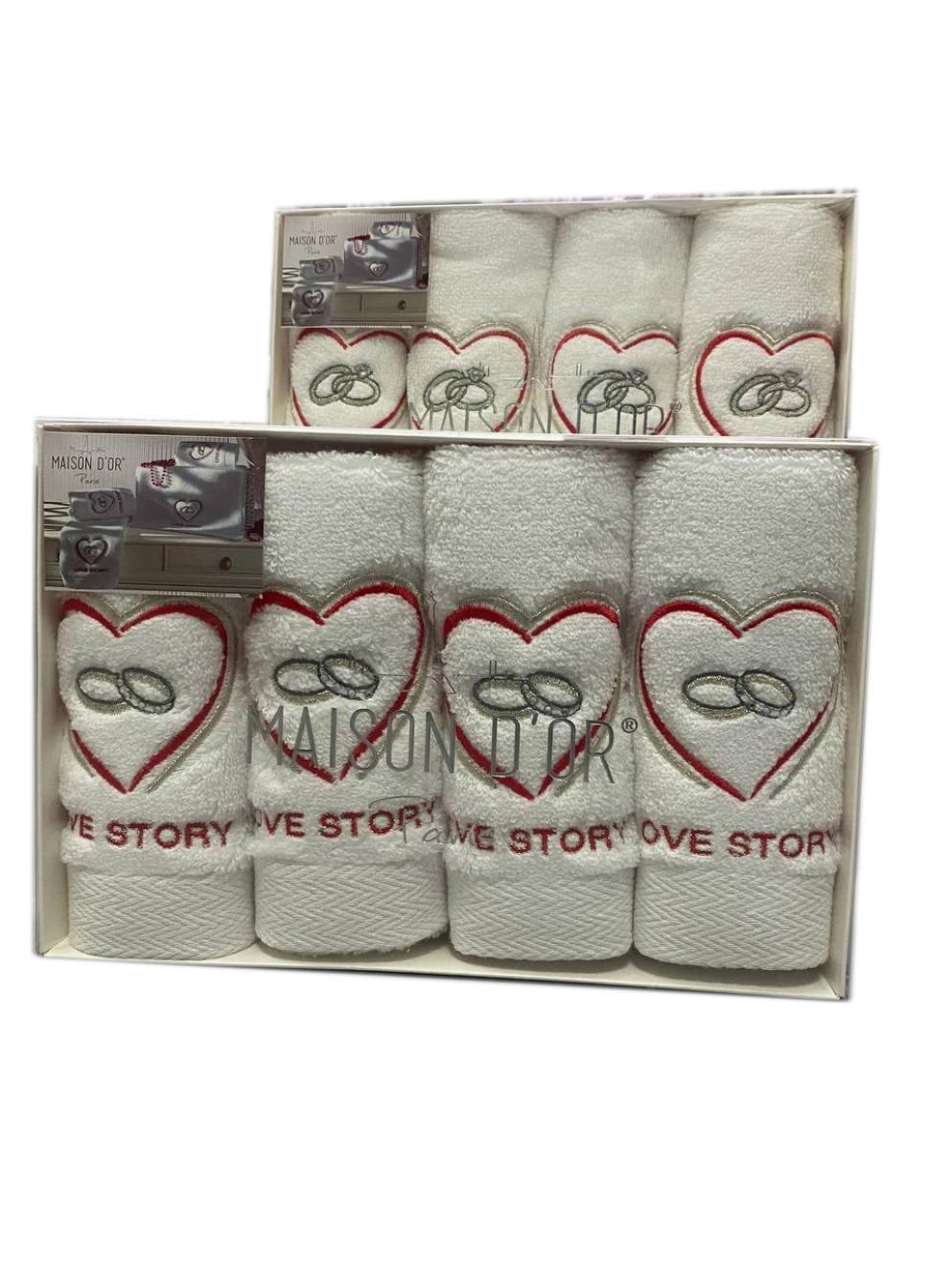 Салфетки махровые с вышивкой Maison D'or "LOVE STORY" 30х50-4шт., белый/красный