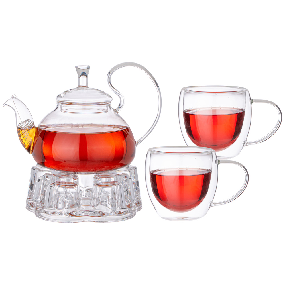 Чайник заварочный на подставке для подогрева "AGNESS" 887-260, 600 мл и 2 кружки 250 мл