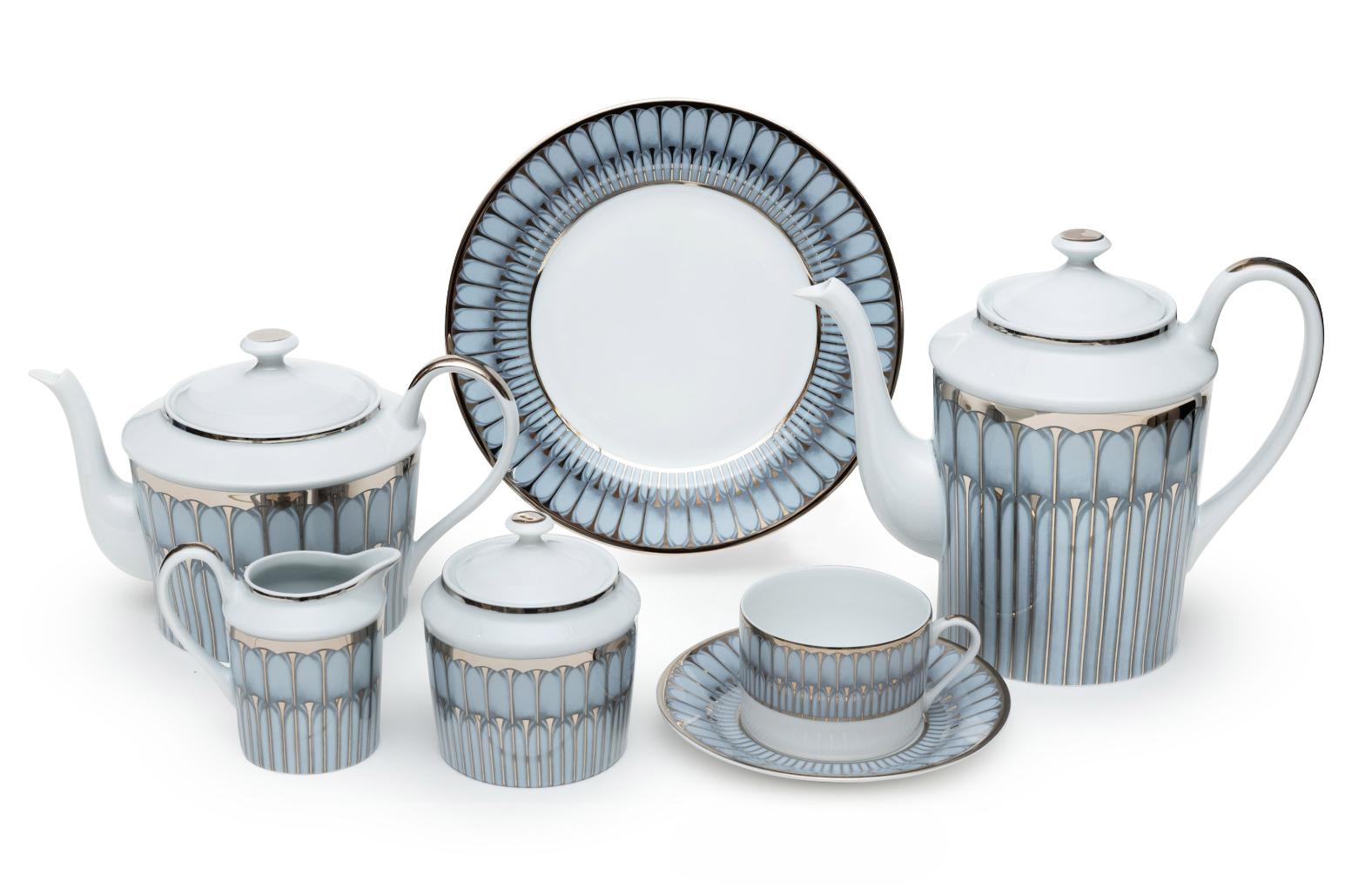 Чайный сервиз "ARCADES GRIS BORD PLATINE" на 6 персон, 22 предмета (лиможский фарфор)