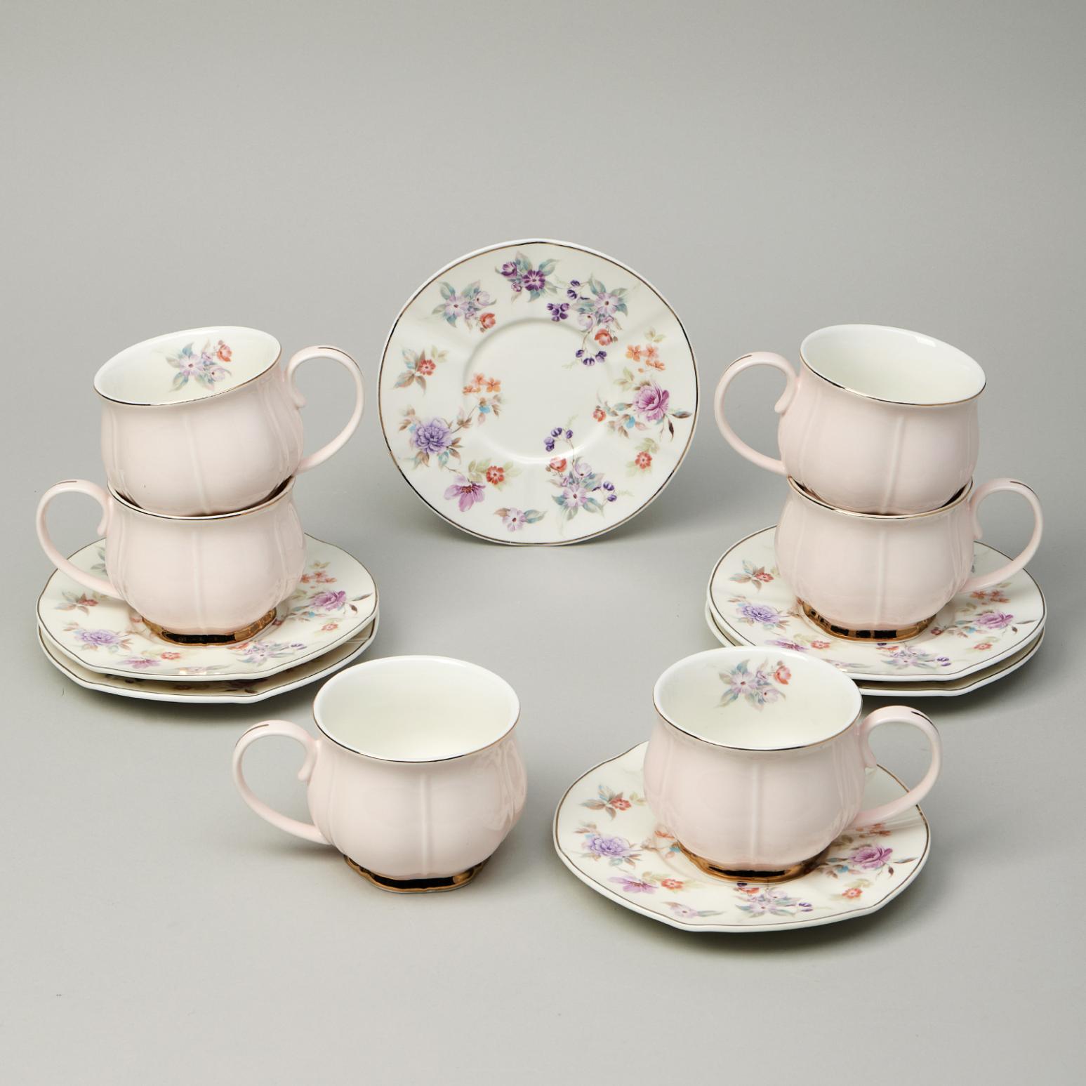 Чайный набор "ВРЕМЕНА ГОДА" 42-566 на 6 персон, 12 предметов (250 мл), розовый