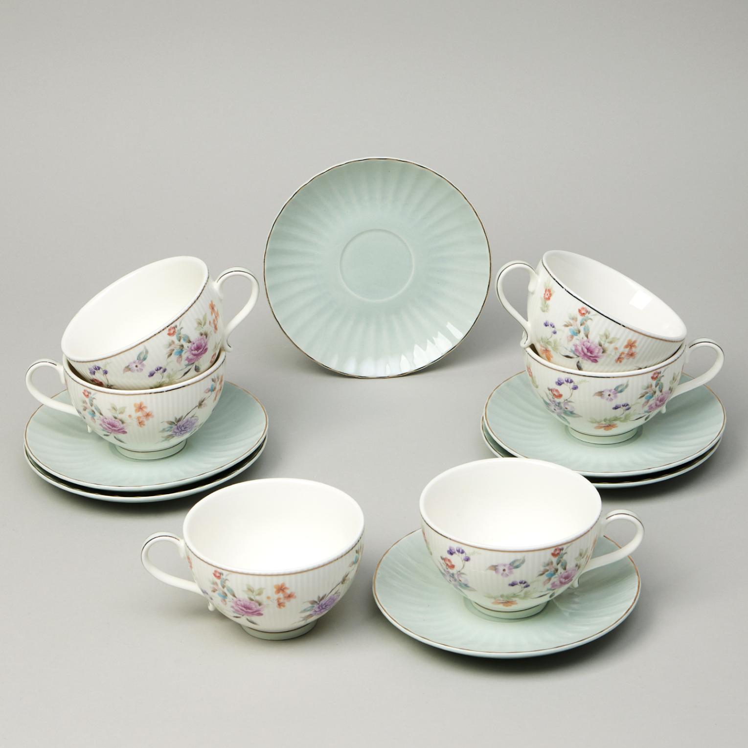 Чайный набор "ВРЕМЕНА ГОДА" 42-571 на 6 персон, 12 предметов (250 мл), голубой