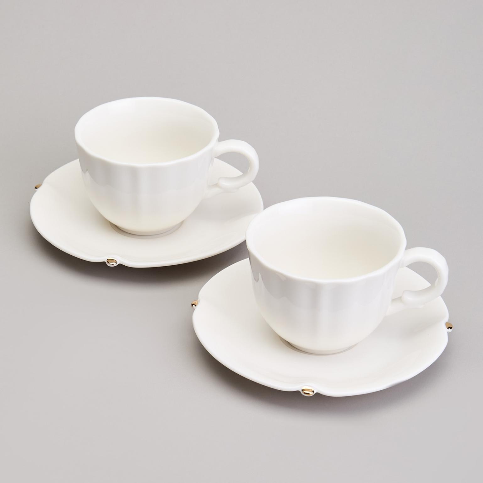 Чайный набор "SUNDAY" золотой на 2 персоны, 4 предмета (220 мл)