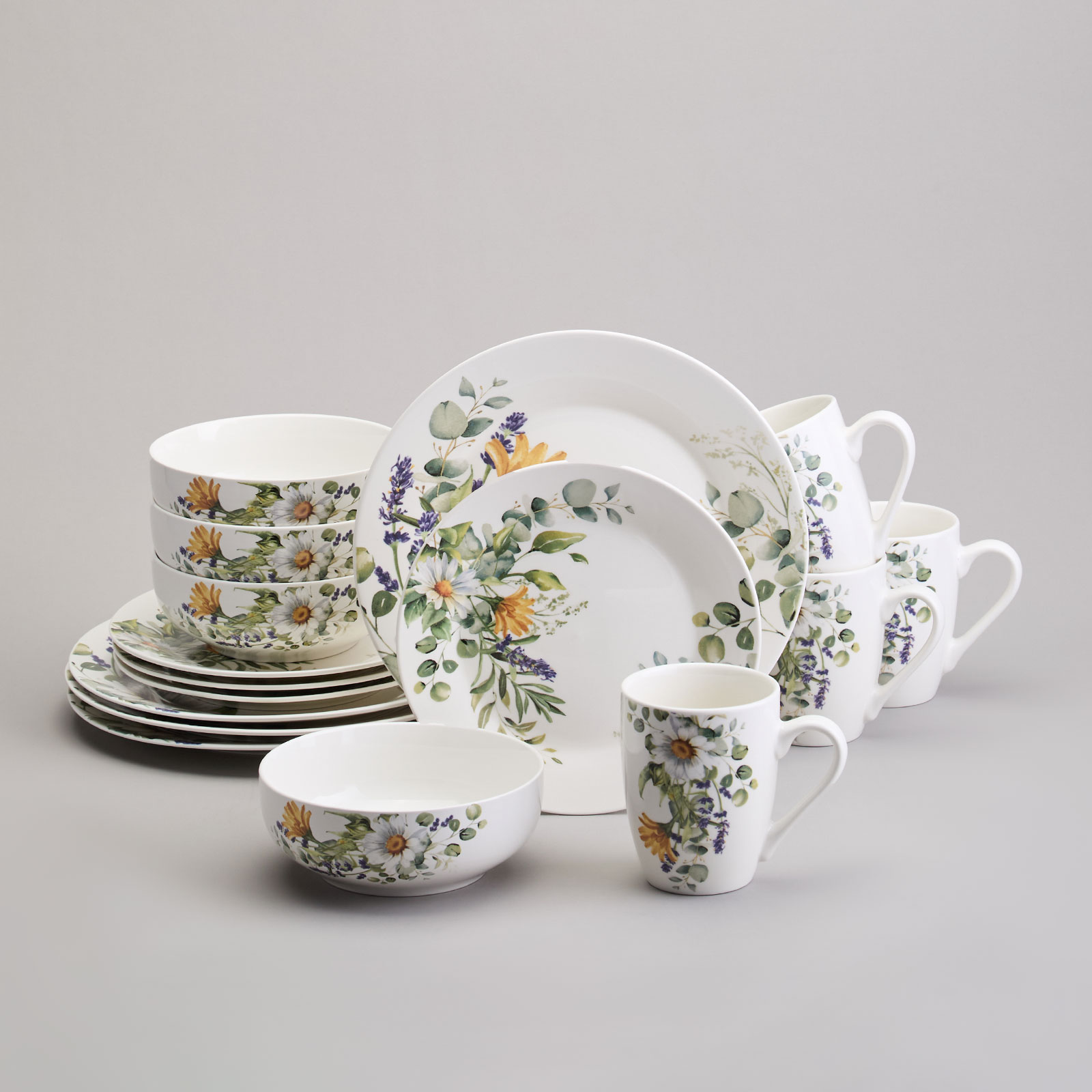 Набор посуды обеденный "РОМАШКОВОЕ ПОЛЕ" на 4 персоны, 16 предметов