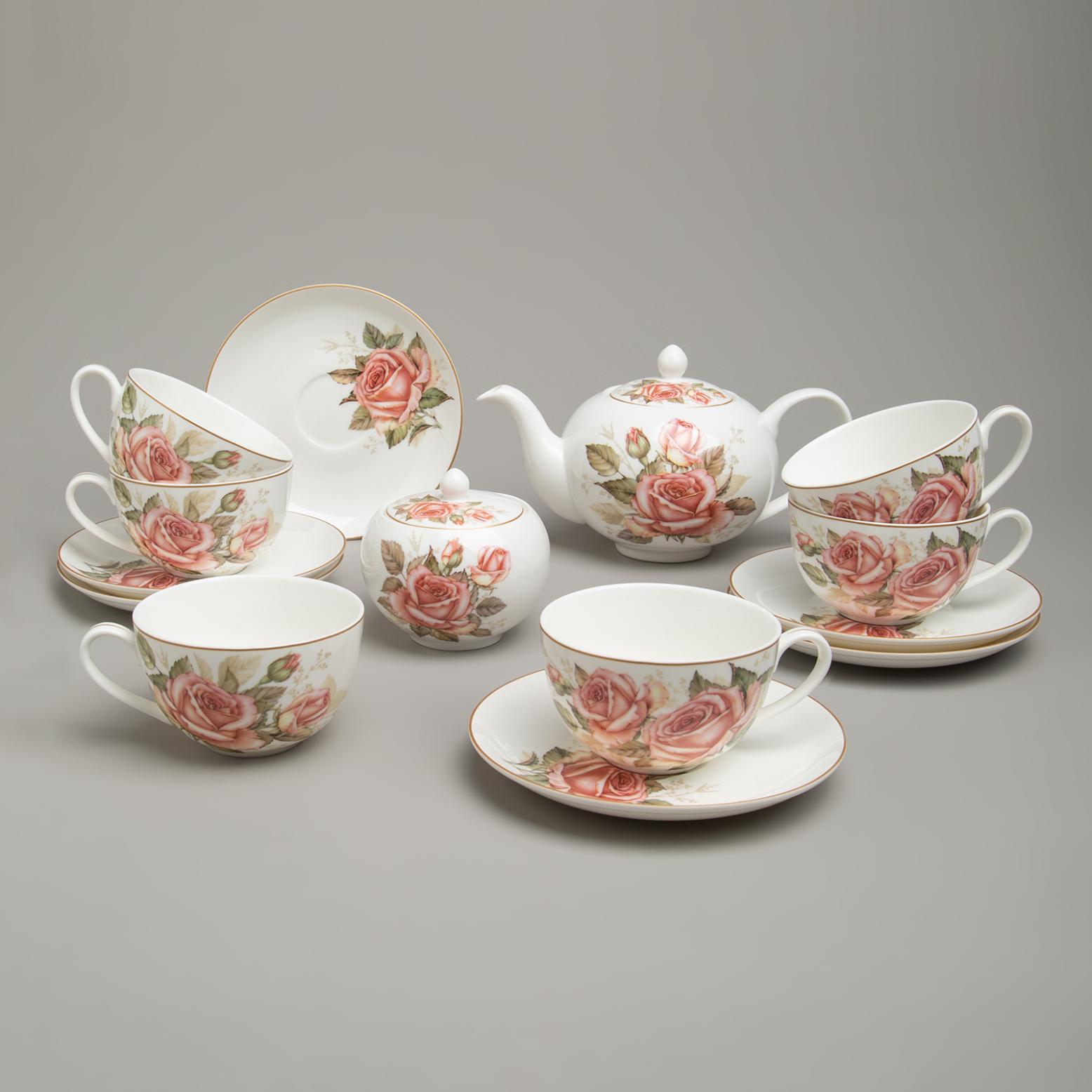 Чайный сервиз "КОРЕЙСКАЯ РОЗА" на 6 персон, 14 предметов
