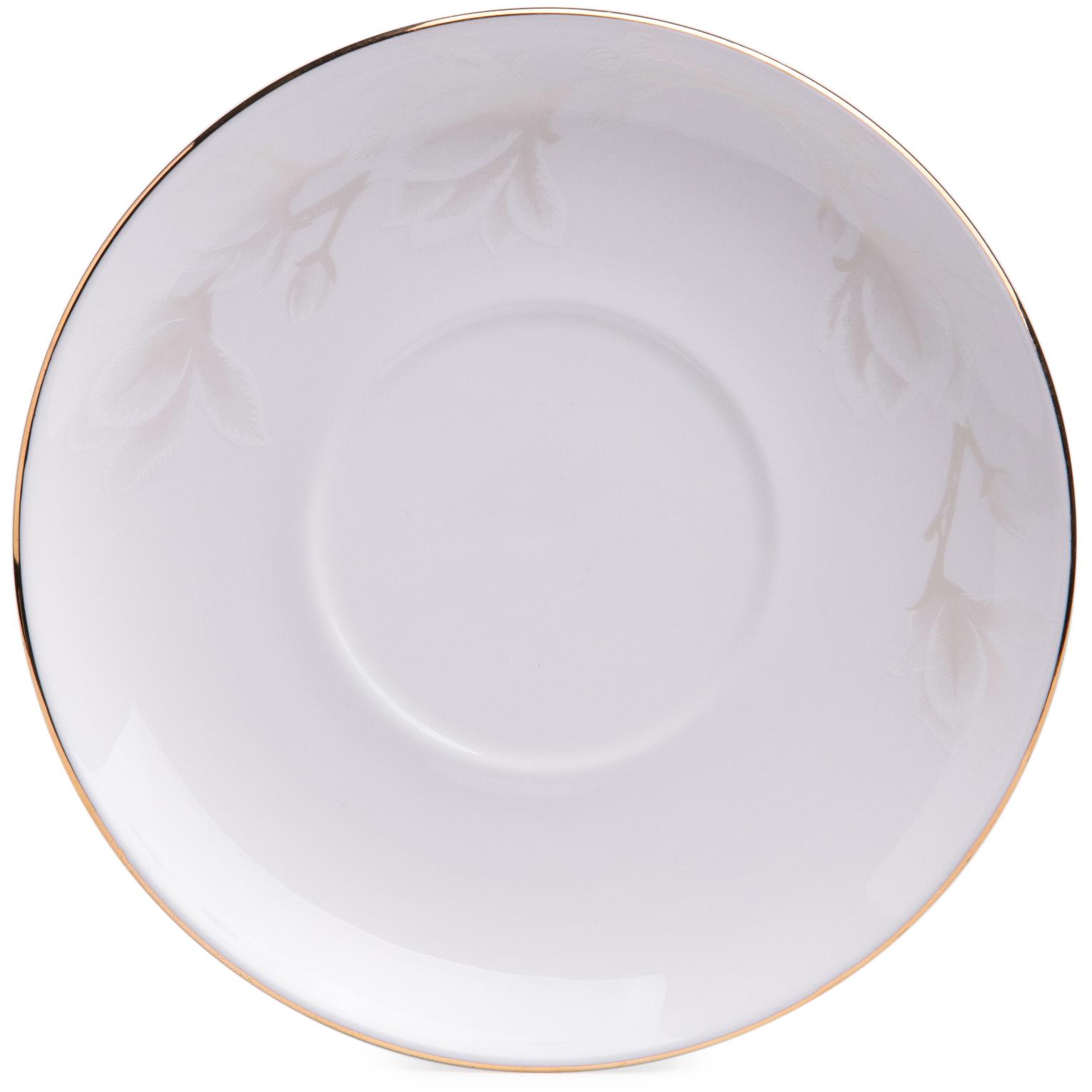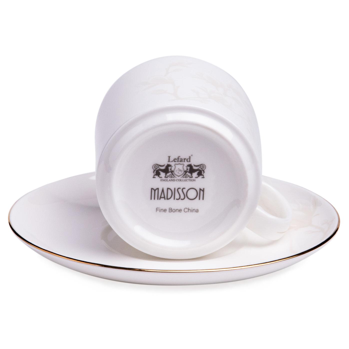 Столовая посуда серии "Медиссон" изготовлена из костяного фарфора мягкого молочного цвета, в состав которого входит 45% костной муки. Изделия тонкие, прочные и прозрачные. Изображение - цветы магнолии, тонкая золотистая окантовка.